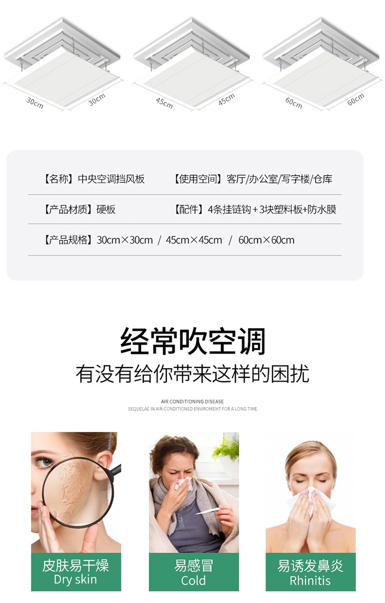 Yinji square ceiling machine central air conditioning outlet windshield windshield plate air duct machine anti-direct blowing wind guide hood widened rectangular ceiling blinds 100*30
