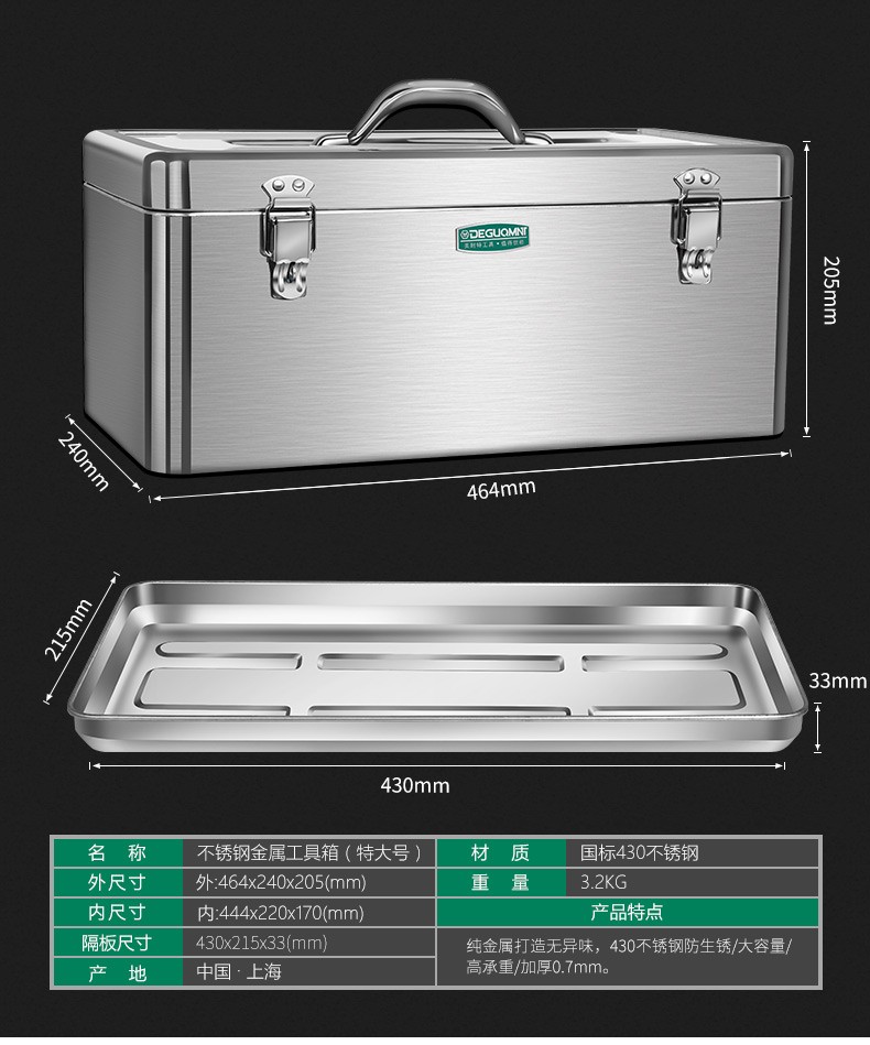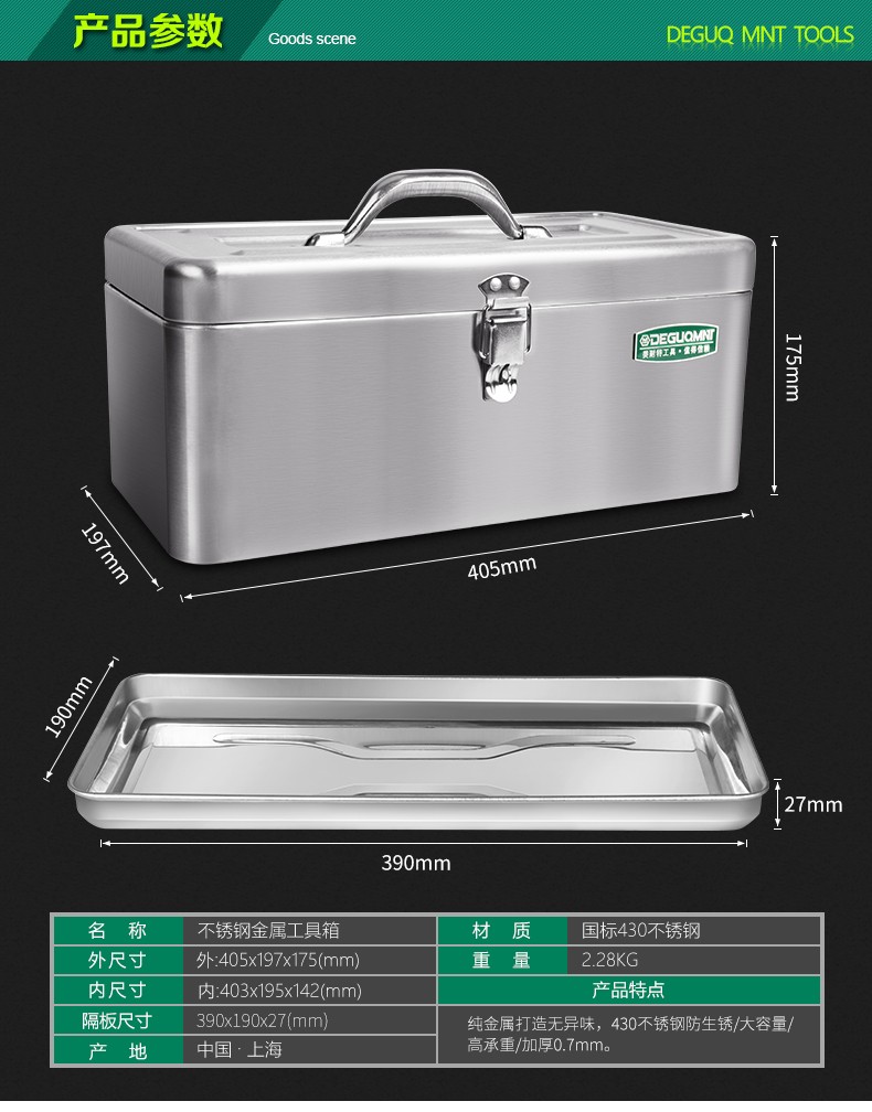 Minite stainless steel hardware tool box storage box home storage box car portable thickened metal tool box double layer medium size