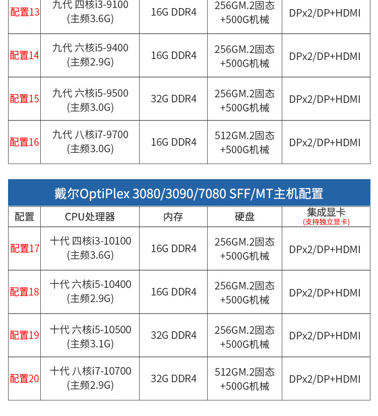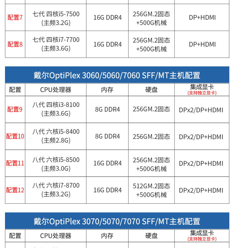 Second-hand 90% new Dell desktop computer 7050 7070 3090 6/7/8/9/10 generation host commercial office gaming desktop configuration 5 i3 7100+8G+256G small chassis
