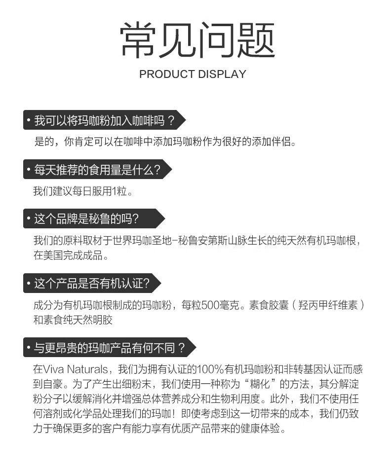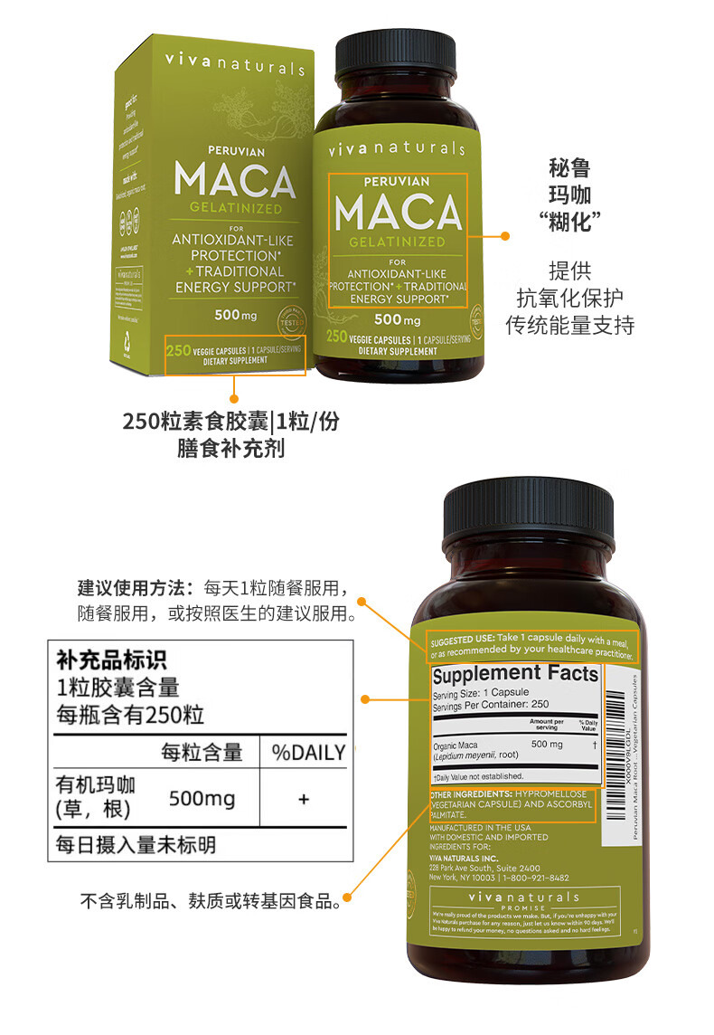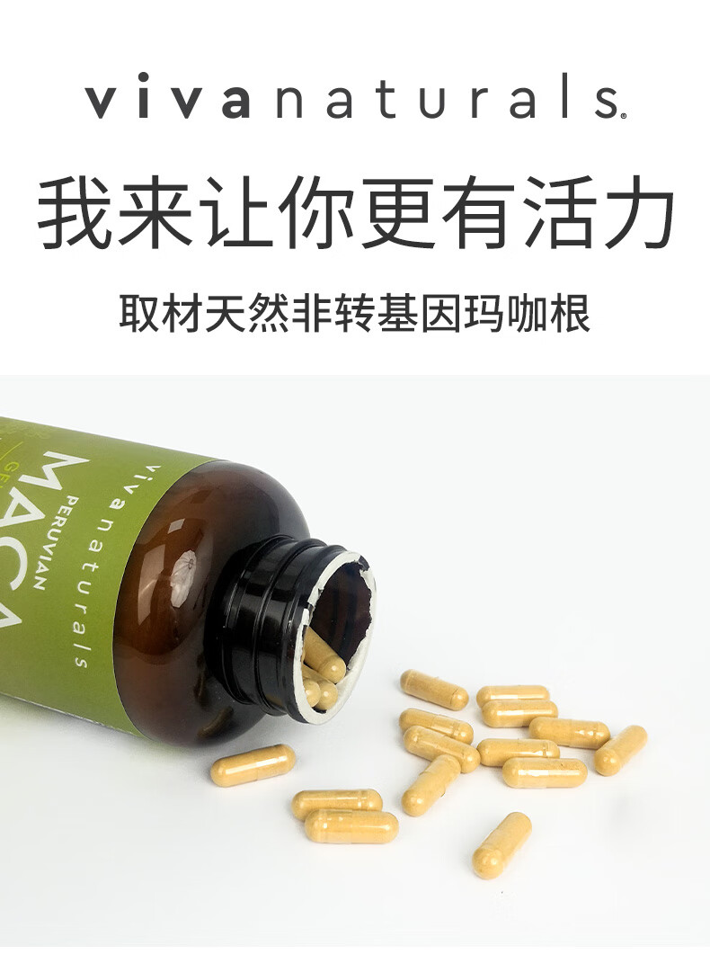 Viva Naturals US imported organic maca capsules men's energy fitness conditioning nourishing high concentration 500mg maca 250 capsules