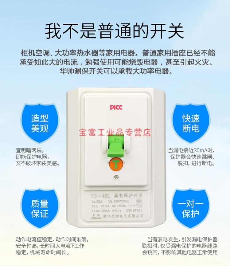Suitable for leakage protection 2P3P air switch HS-40L leakage protection 40a32A Huashhuai circuit breaker 3P 40A