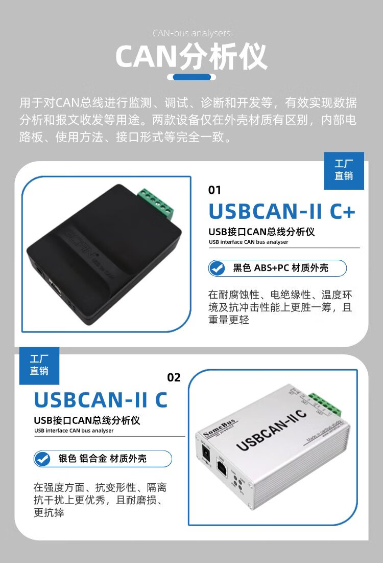 Guangcheng CAN box bus analyzer USB to CAN card new energy vehicle J1939 analysis compatible CAN debugging tool usb module USBCAN-II C