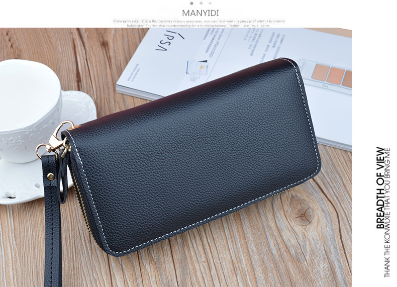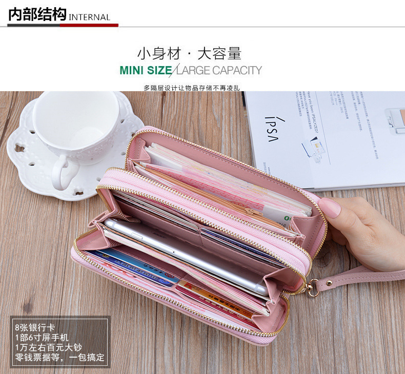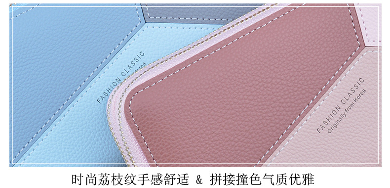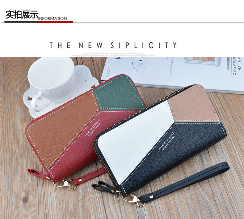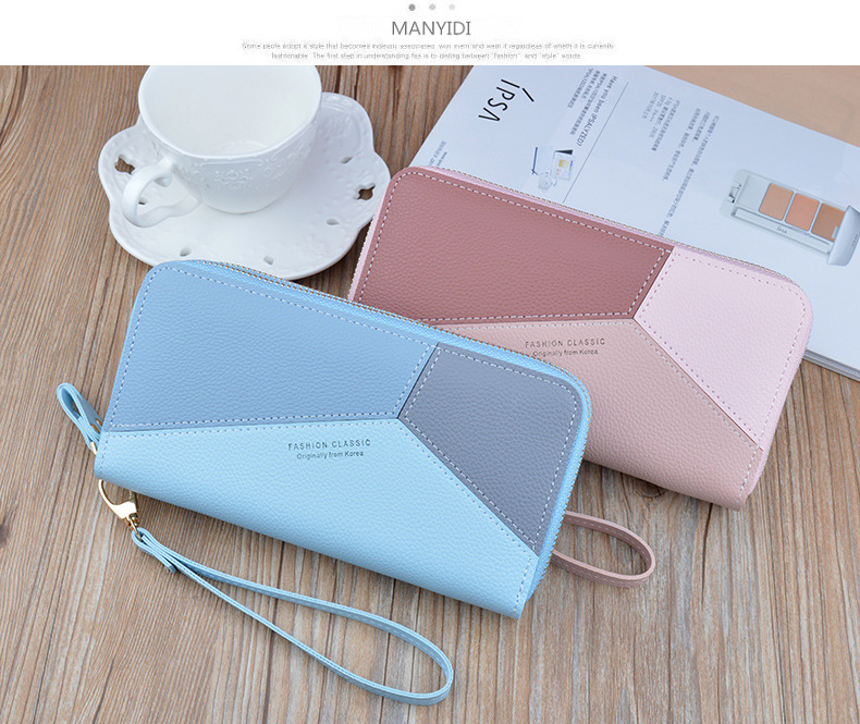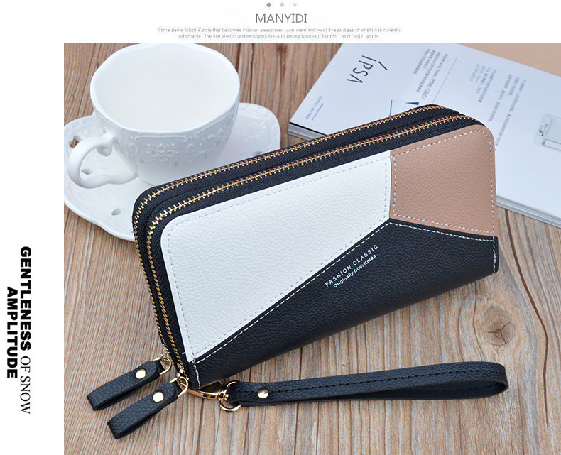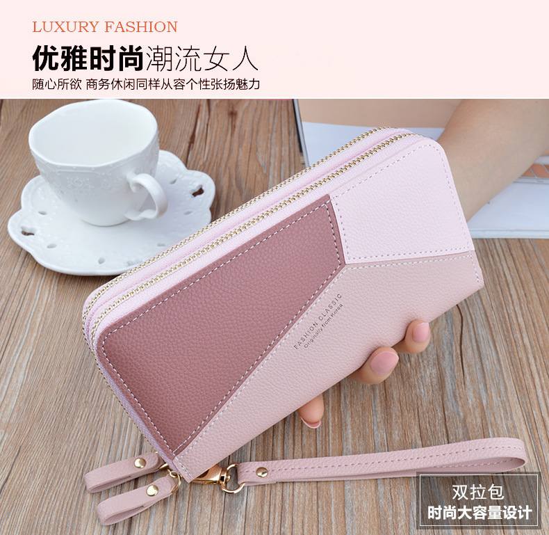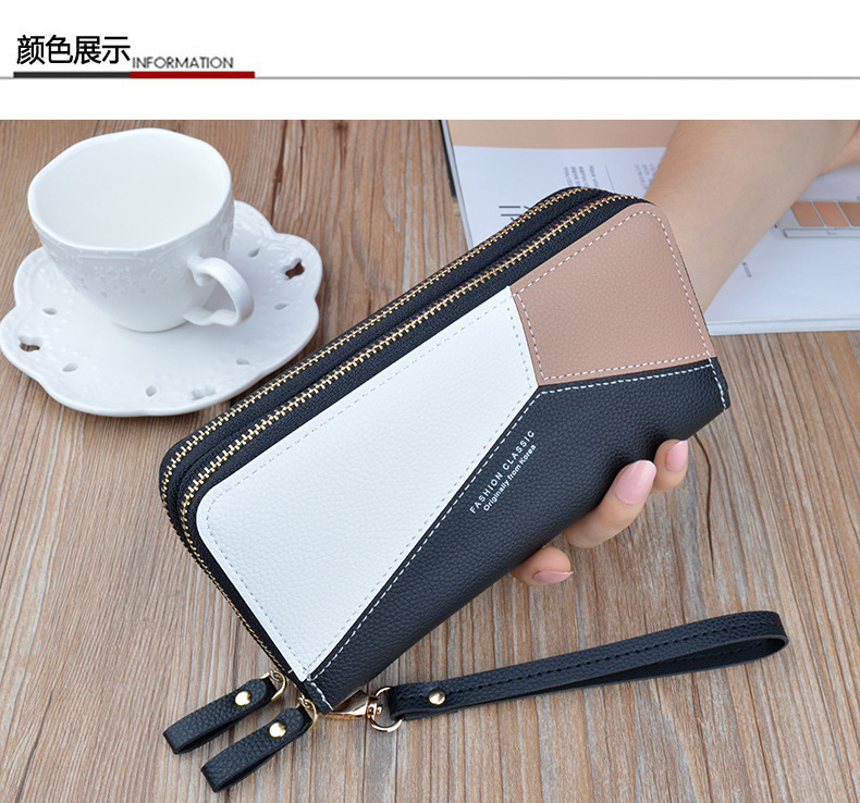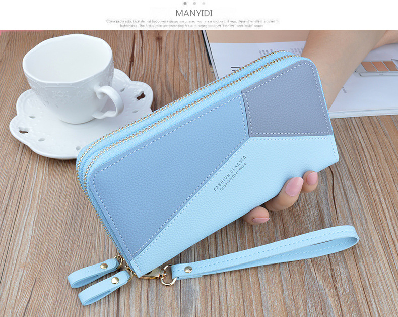 Simple cloth 2021 new double zipper hand wallet women's long style stitching contrasting color large capacity double layer wallet mobile phone small bag blue