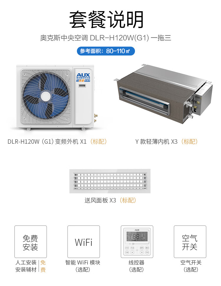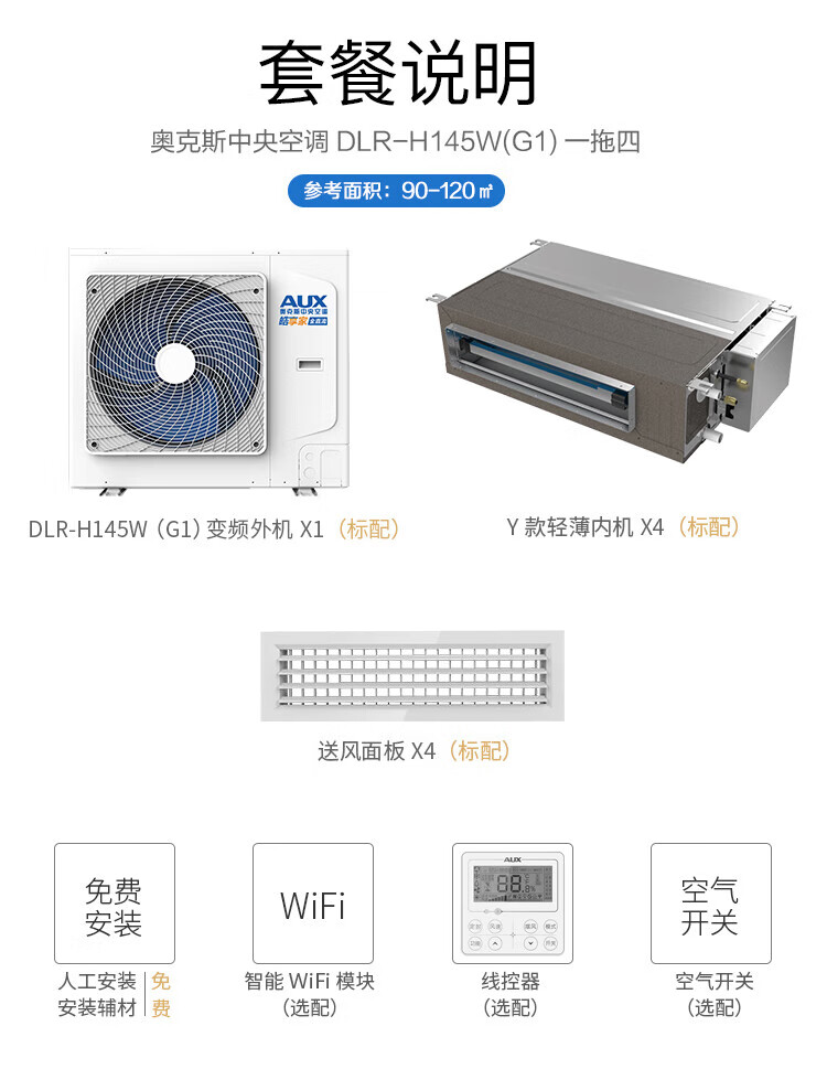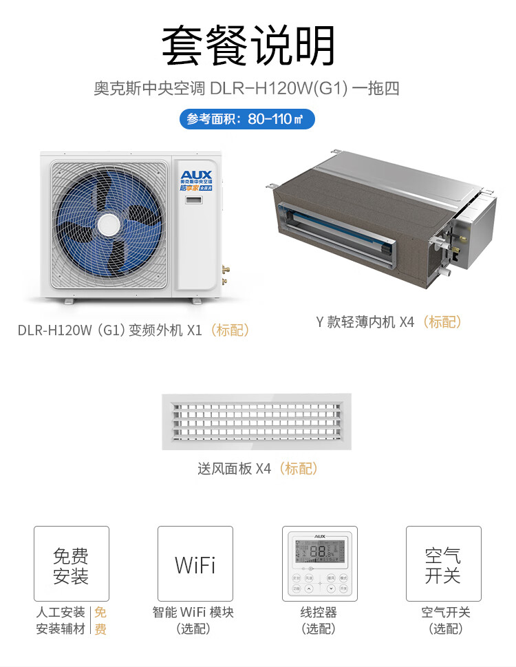 Oaks central air conditioning duct machine 4P5P6P one to four/one to three/one to five one to six multi-online variable frequency first-level energy efficiency embedded air conditioner 5 HP first-level energy efficiency 120W (G1) one to four default 1