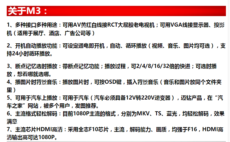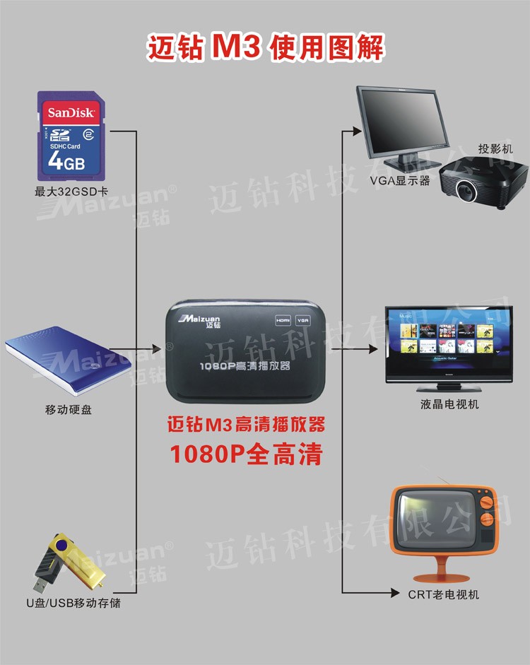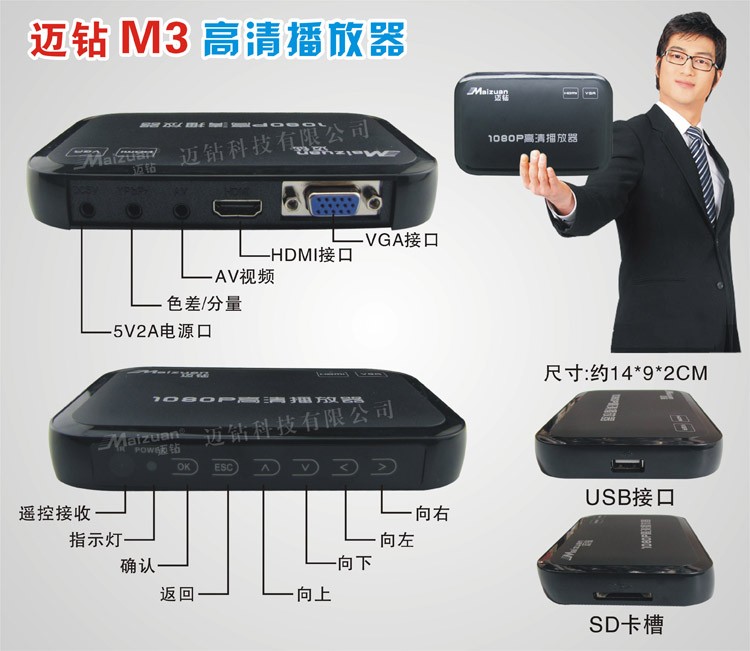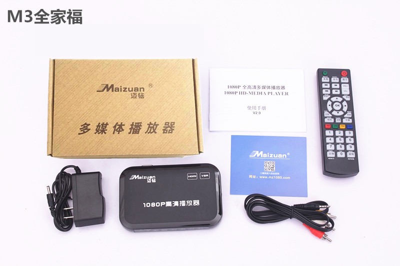 Maizuan M3 VGA high-definition hard disk player new and old TV AV hard disk U disk video network box multimedia 1080P player HDMI advertising machine M3 standard + HDMI cable + 64G U disk standard