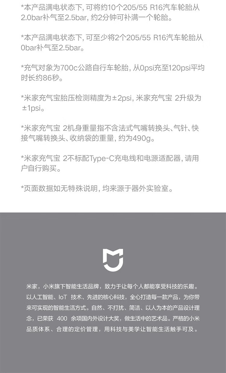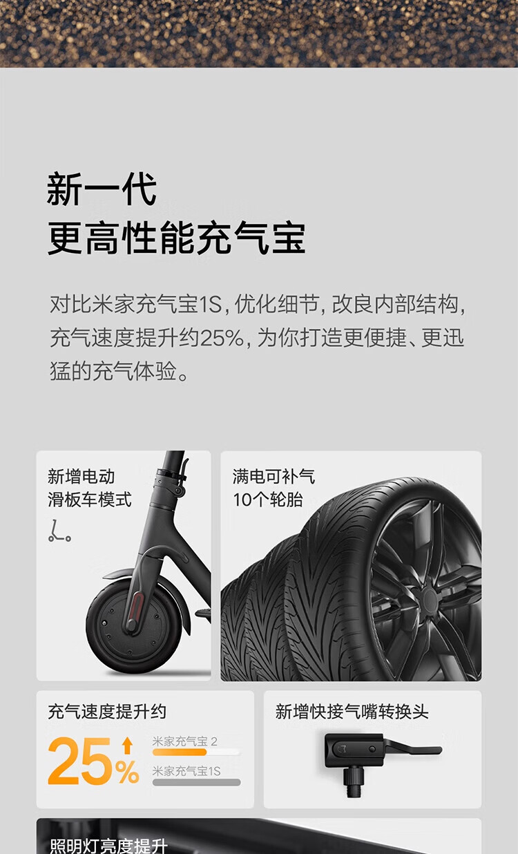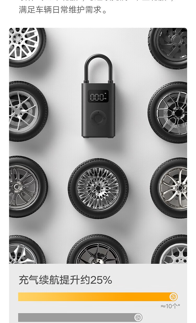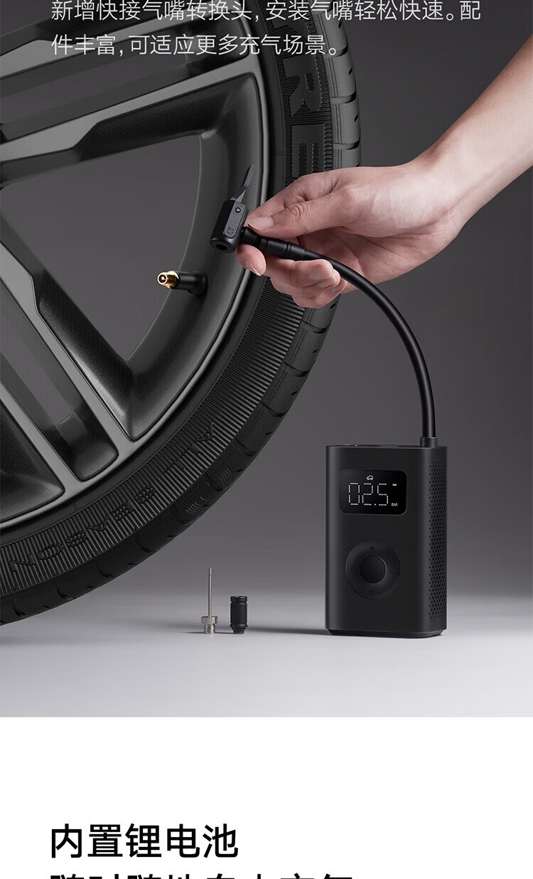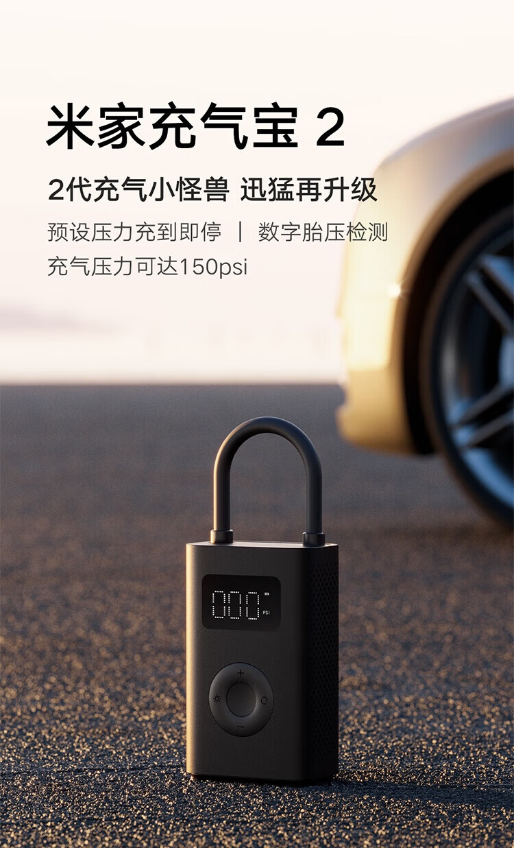 Mijia Xiaomi Inflatable 2 Tire pressure detection preset pressure stops charging when the preset pressure is reached Built-in lithium battery upgraded version of the air pump Xiaomi Inflatable 2