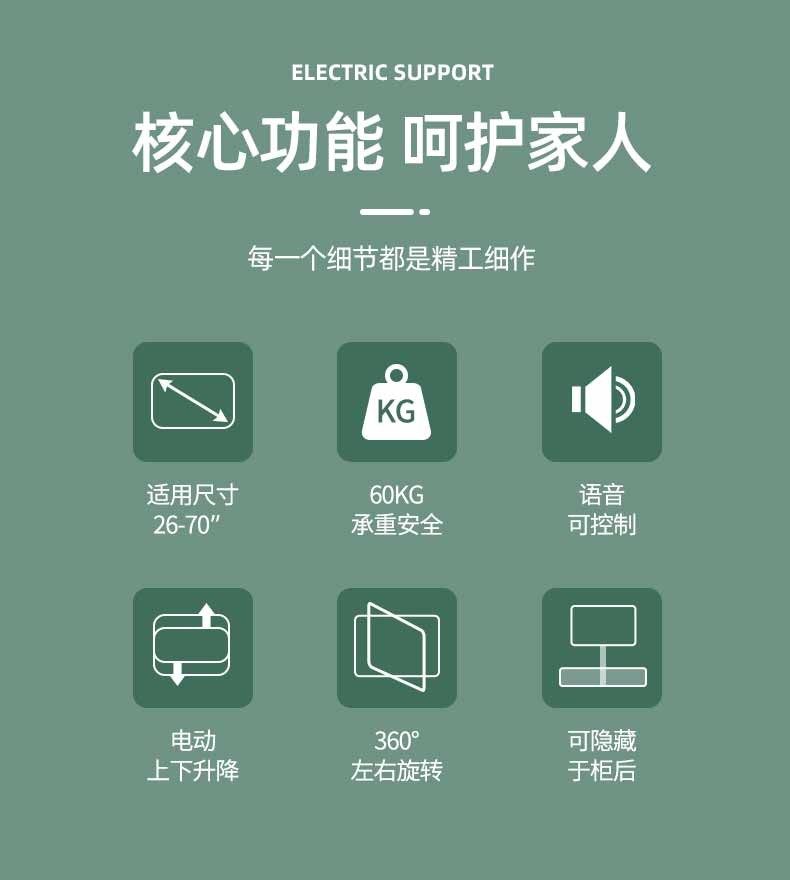 HILLPORT55 65 70 75 85 98 100-inch TV lift remote control electric up and down telescopic display bracket cabinet hidden TV cabinet type 360-degree swivel rack universal 26-43 inch small screen/three-section telescopic
