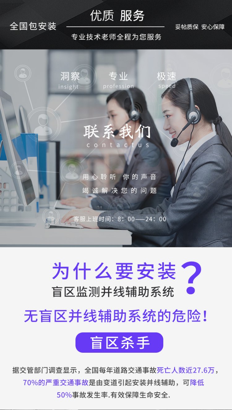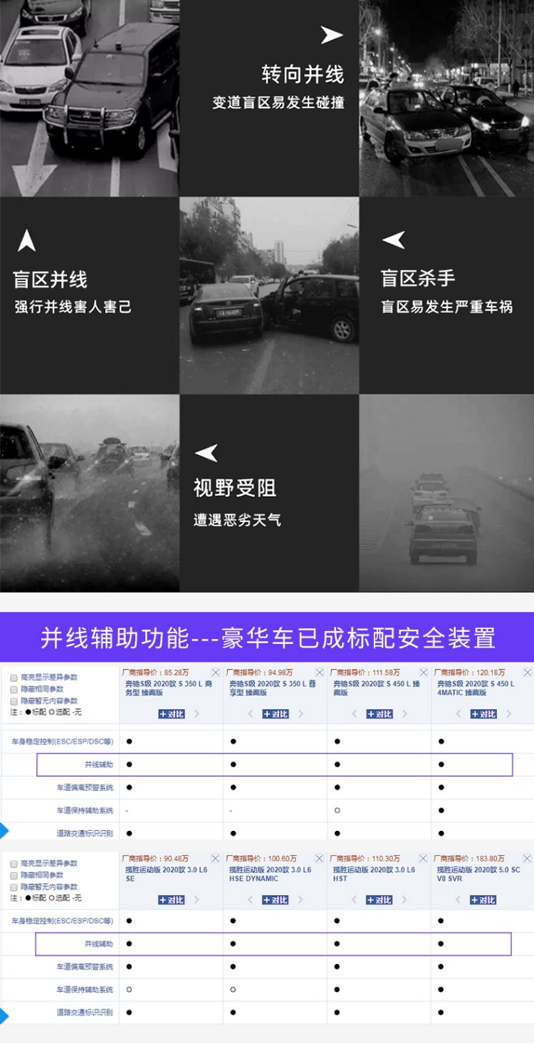Audi blind spot detection and line assist BSD system A4LA6LA3Q5LQ7 modified lane change blind spot radar installation, special for Audi A3-A8, standard type, nationwide installation package