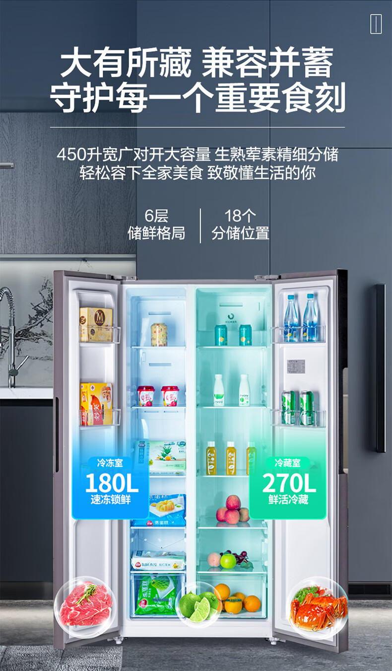 Xinfei (Frestec) 450-liter double-door multi-dimensional air-cooled frost-free frequency conversion first-class computer temperature-controlled large-capacity refrigerator BCD-450WK9ET household refrigerator