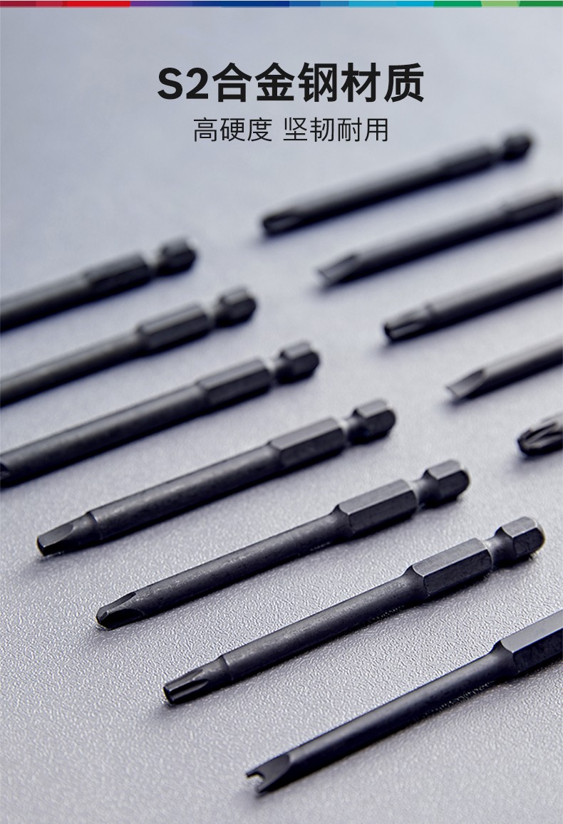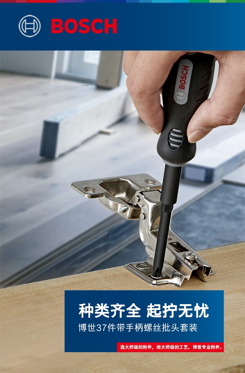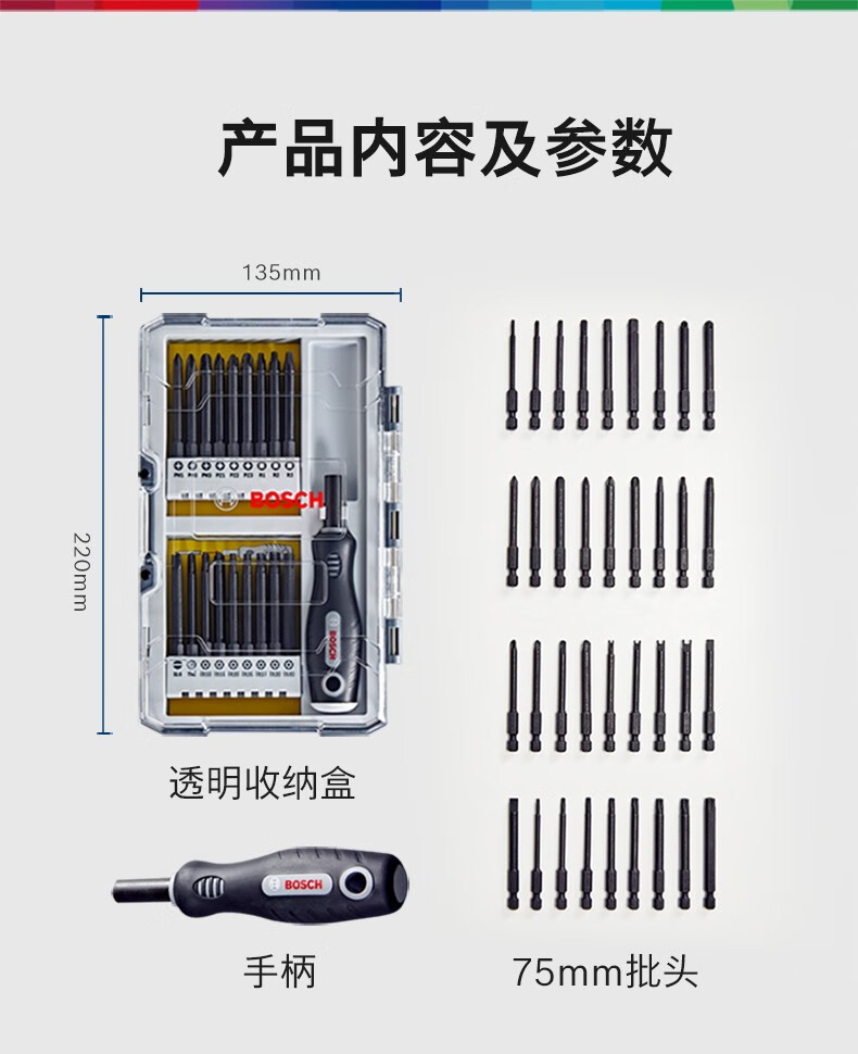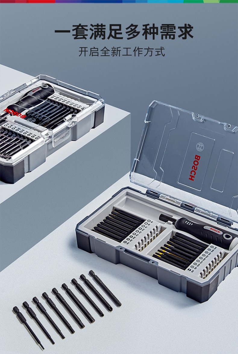 Bosch 37-piece long bit driver set with handle, hexagonal handle S2 steel bit, 1/4 hexagonal handle, 6.35mm four-wing, three-wing U-shaped square hole and other various bits 37-piece long bit set with handle