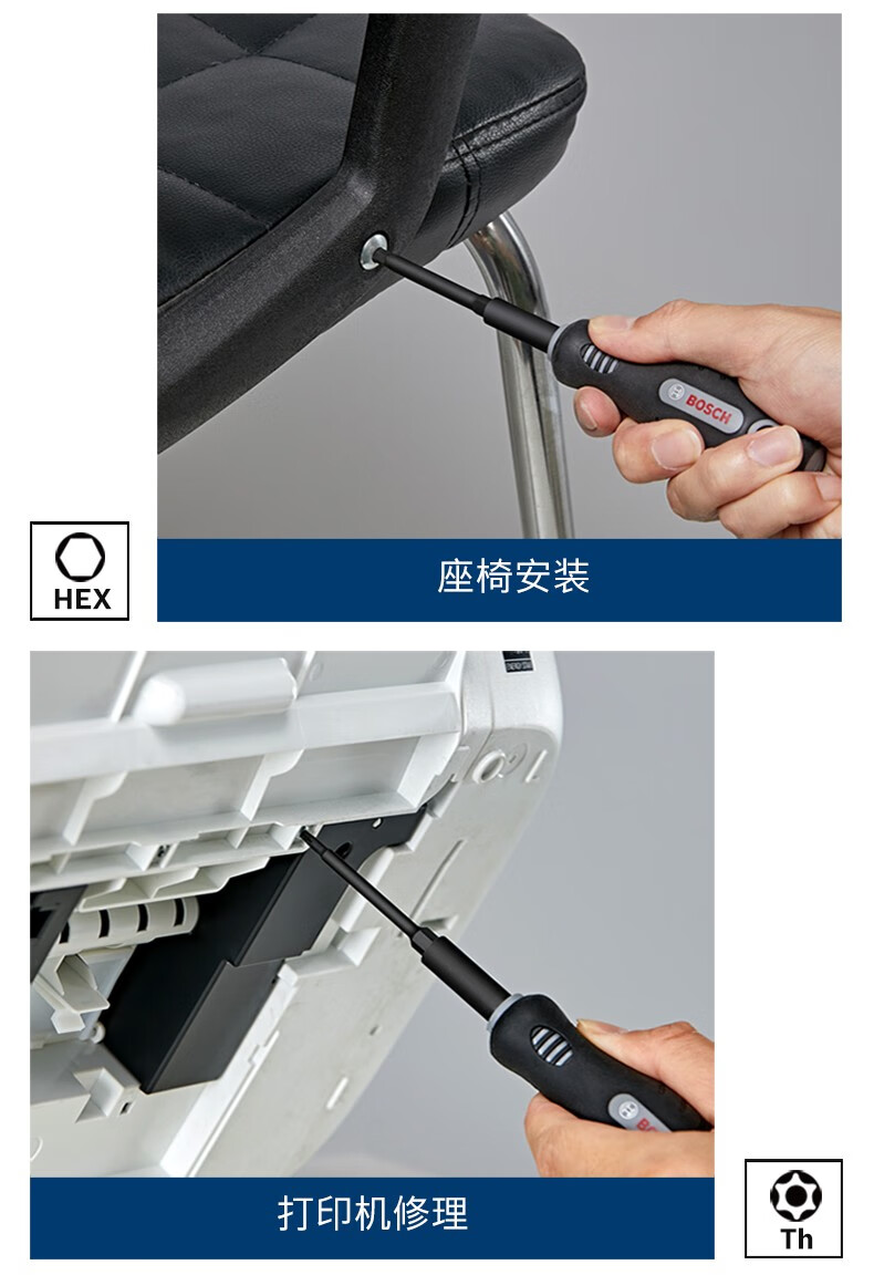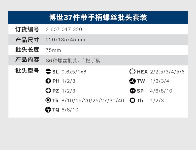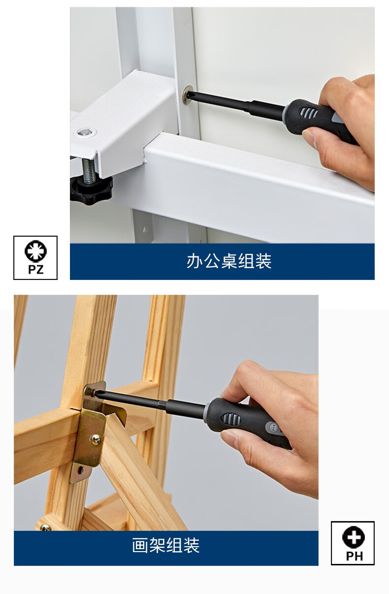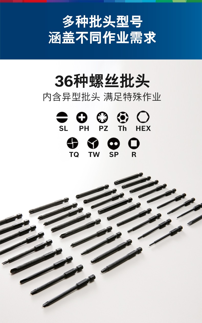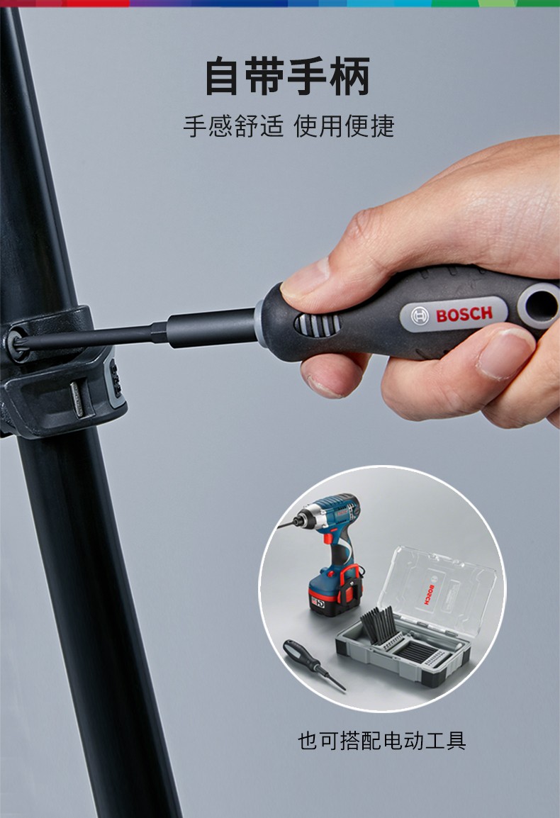 Bosch 37-piece long bit driver set with handle, hexagonal handle S2 steel bit, 1/4 hexagonal handle, 6.35mm four-wing, three-wing U-shaped square hole and other various bits 37-piece long bit set with handle