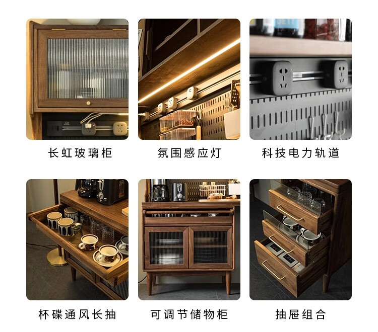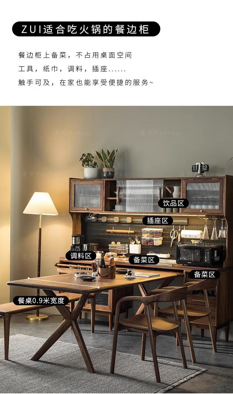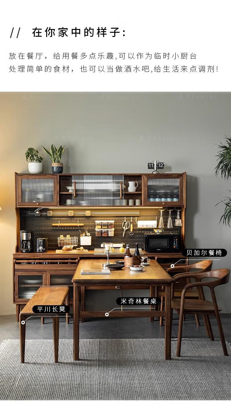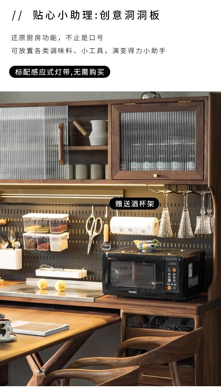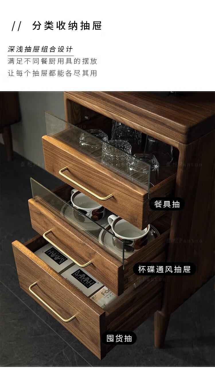 Panzhen solid wood sideboard black walnut dining table integrated wall high cabinet small apartment multi-functional storage cabinet wine cabinet North American black walnut 210*45*180cm assembled