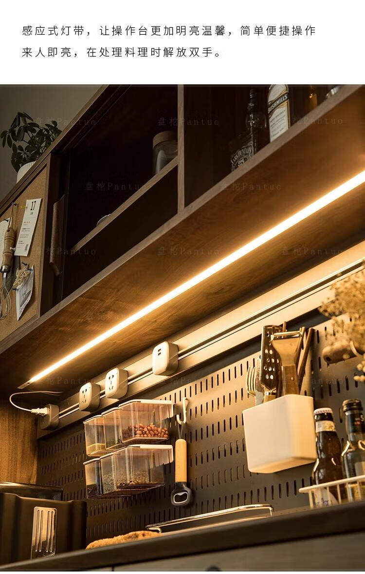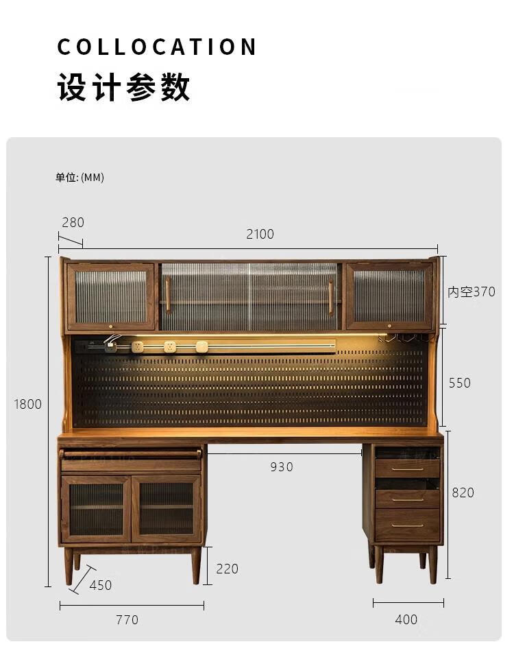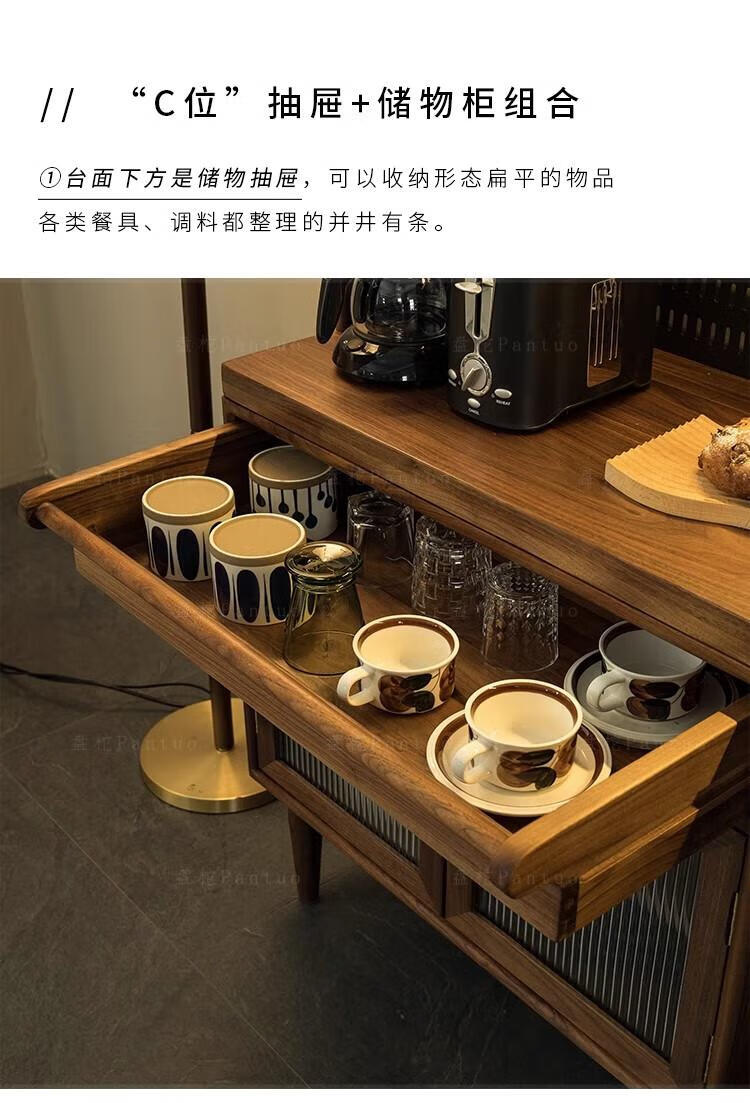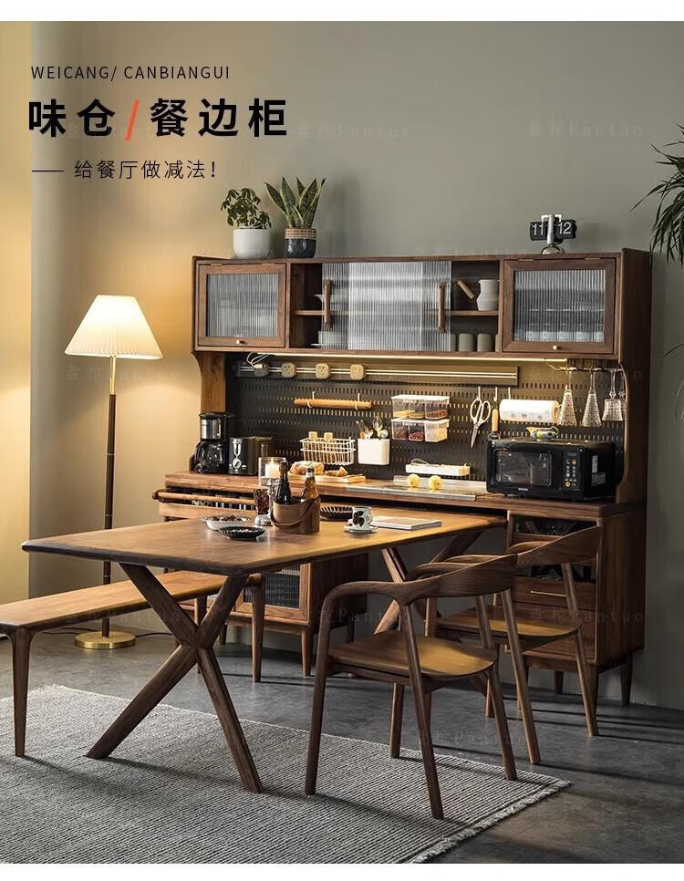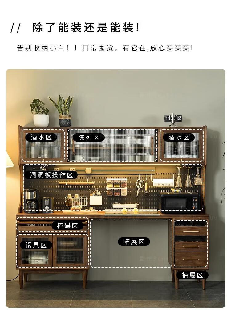 Panzhen solid wood sideboard black walnut dining table integrated wall high cabinet small apartment multi-functional storage cabinet wine cabinet North American black walnut 210*45*180cm assembled