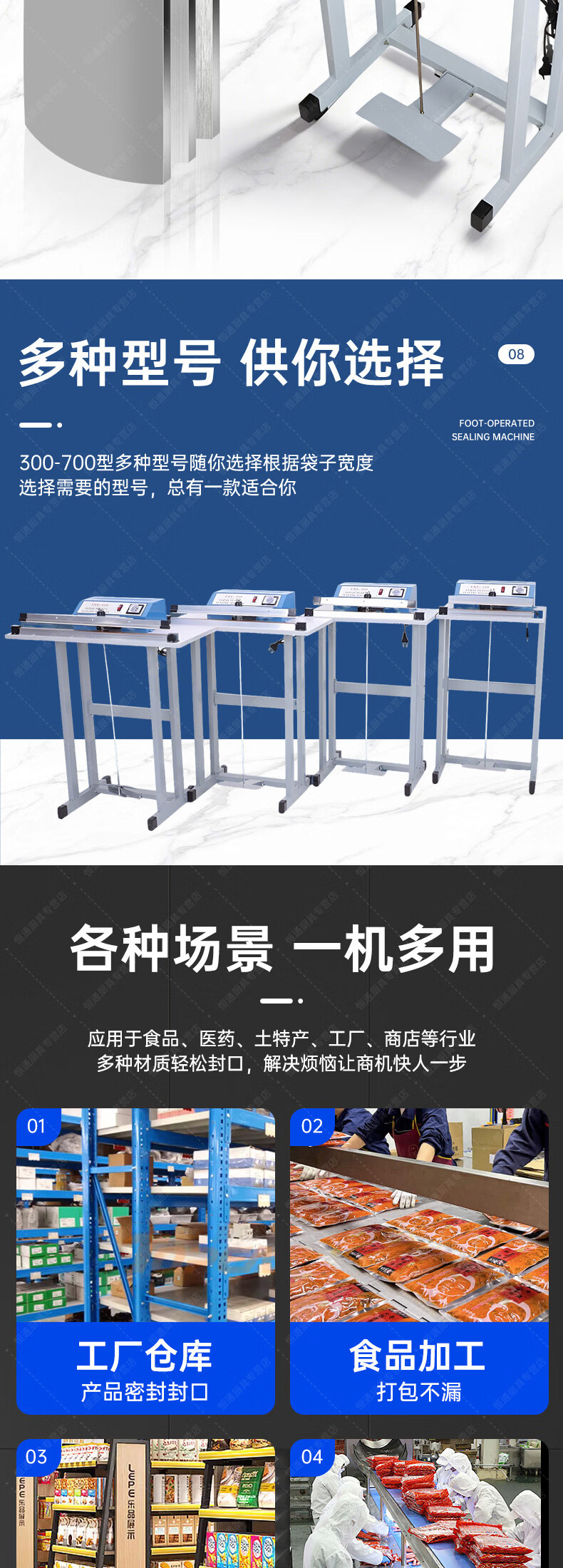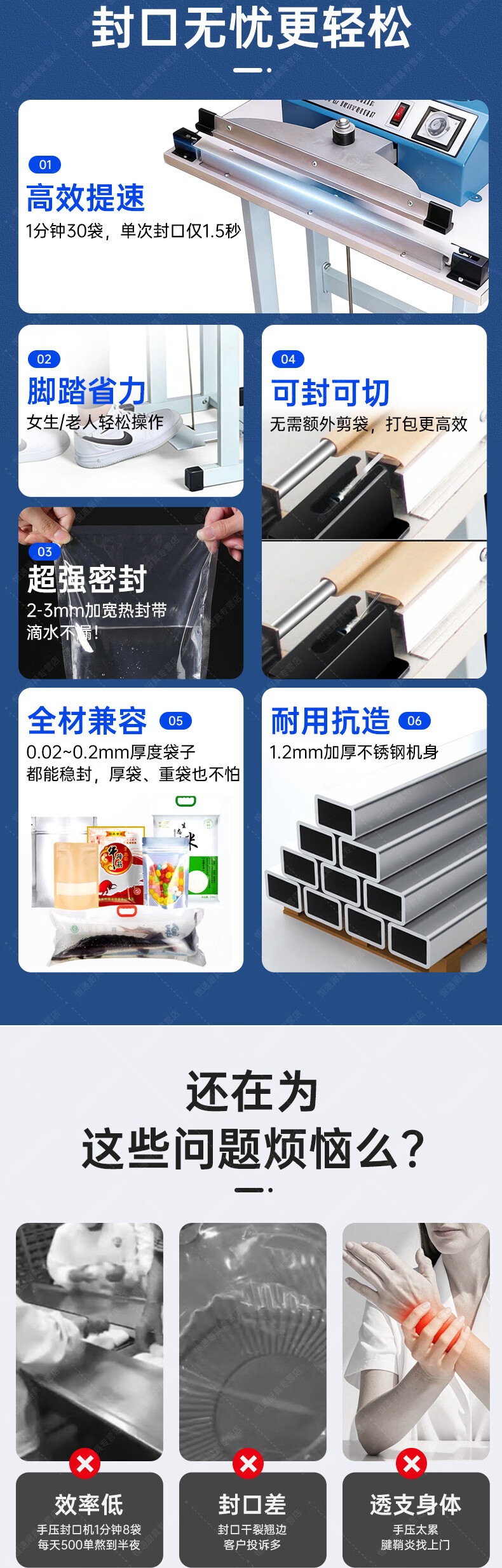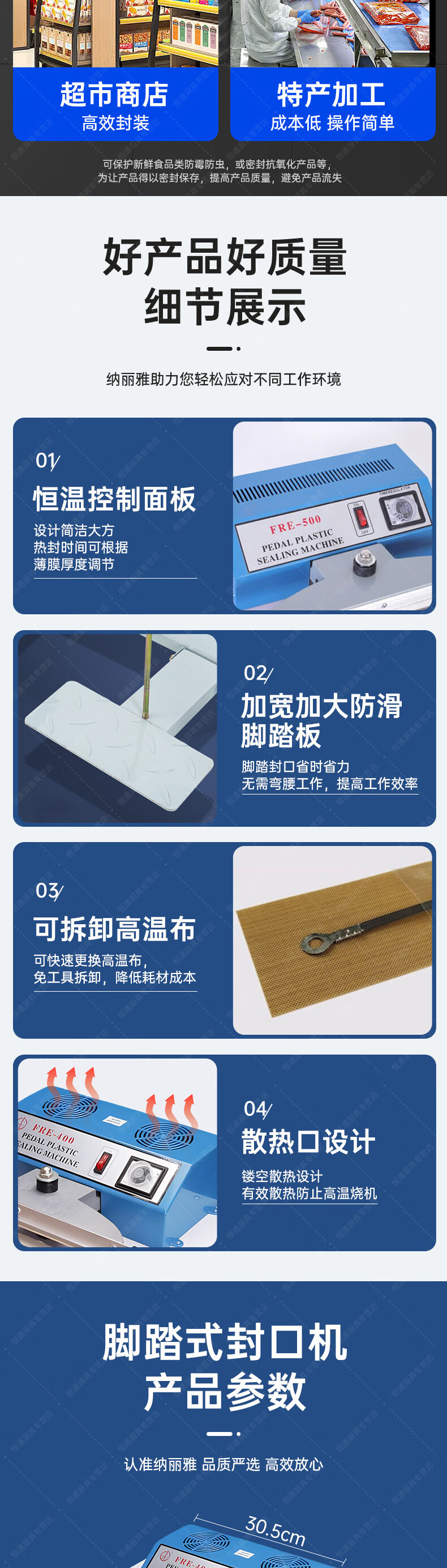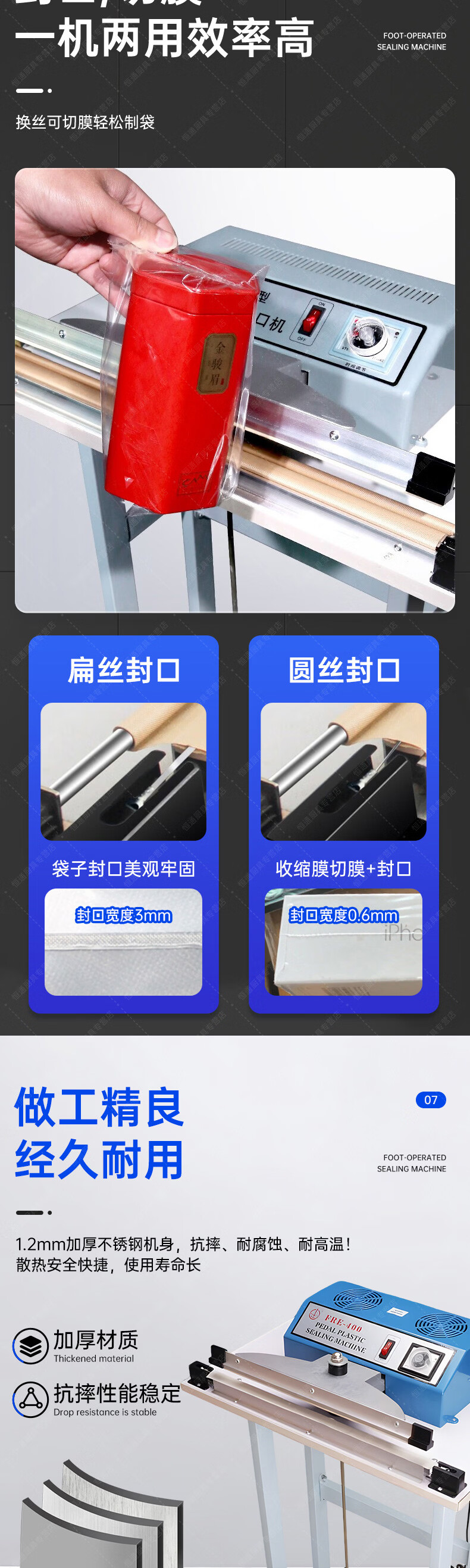 Naliya commercial sealing machine foot pedal plastic film sealing and cutting dual-purpose continuous shrink film aluminum foil bag quick packaging multi-functional vertical plastic packaging machine foot pedal 400 type 380mm width 2mm