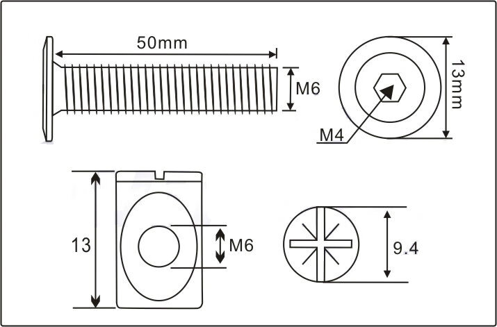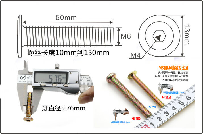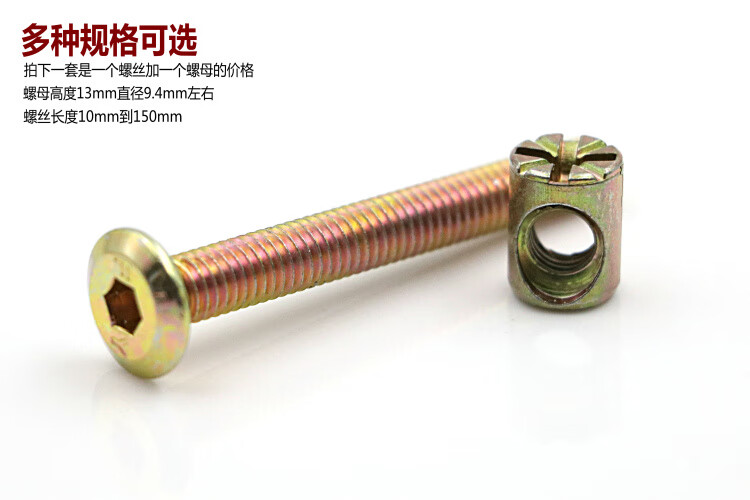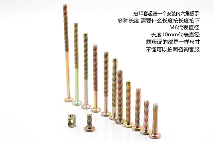 Shantou Lincun M6 furniture hardware screws crib accessories screws cross hole nuts bookcase oblique flat head screws hammer head nuts M6x length 60mm set price