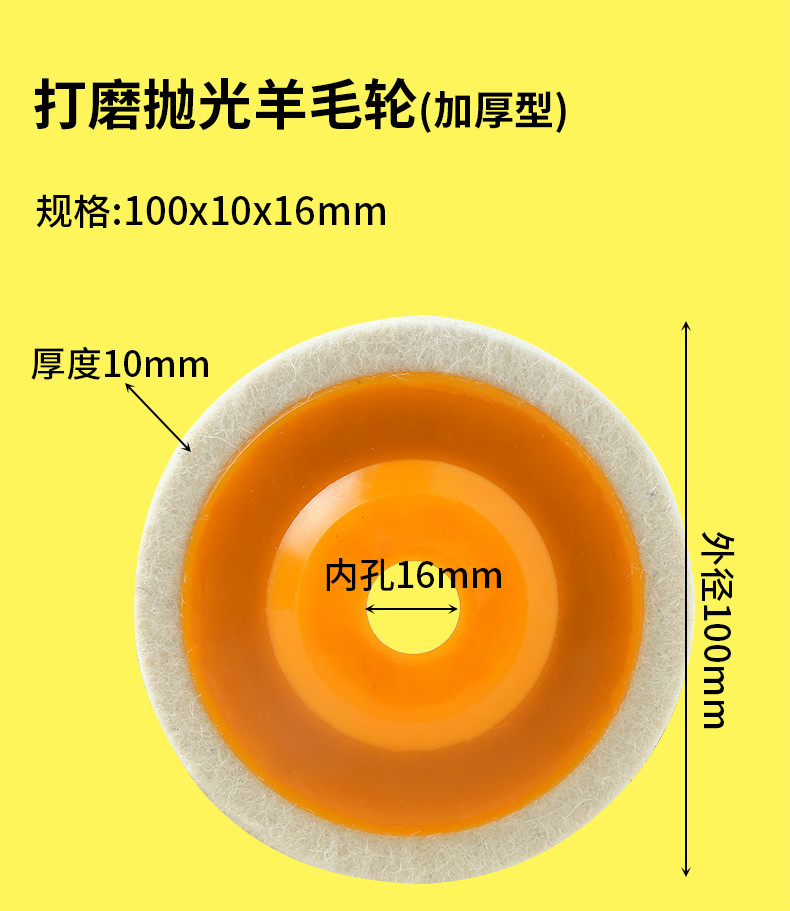 Wool wheel mirror polishing disc, stainless steel metal polishing wheel, wool polishing disc, wool ball 100*16 angle grinder, three types of wool wheels, one piece each (3 pieces in total)