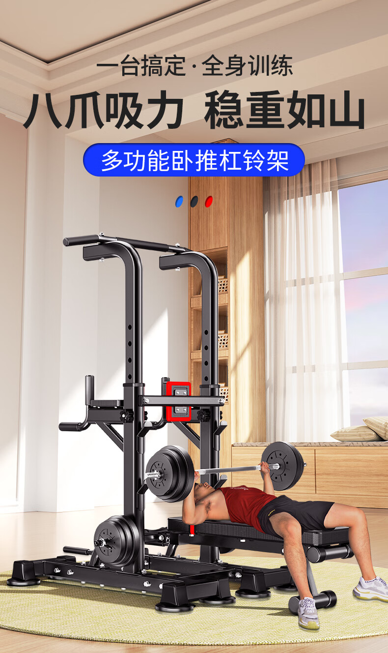 Zhuo Brand Horizontal Bar Home Indoor Family Adult Single Bar Multi-Function Fitness Equipment Bench Press Rack Pull-Up Machine No Punching Octagonal Big Mac Horizontal Bar + Barbell Stool (Set)