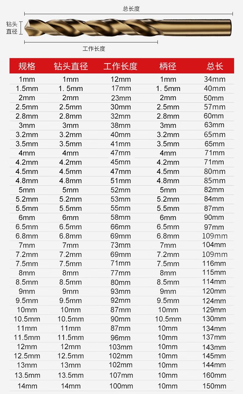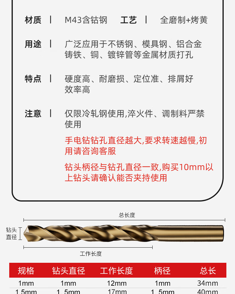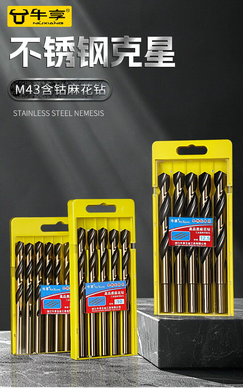 Niuxiang M43 twist drill bit stainless steel special cobalt-containing hand electric drill for drilling steel super-hard tungsten steel alloy straight shank drill bit M43 cobalt-containing drill bit 4.2mm 10 pieces