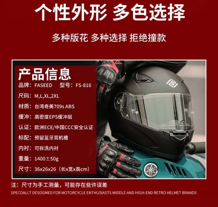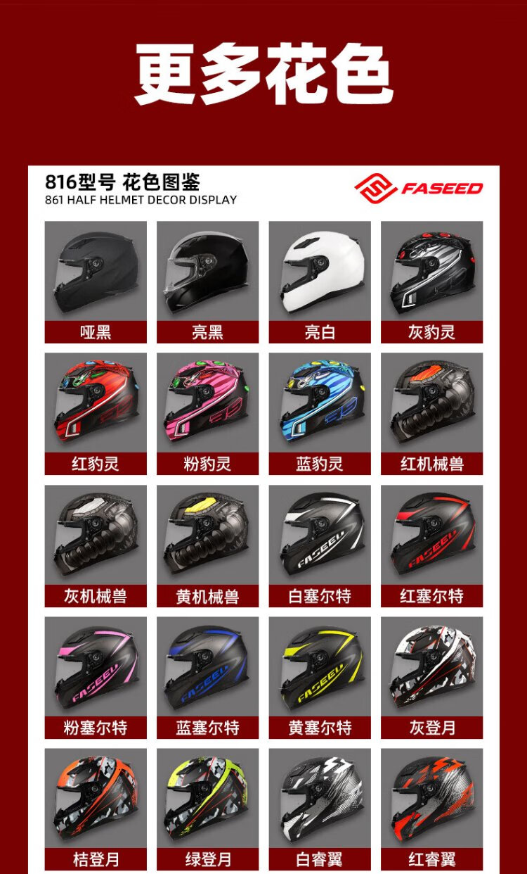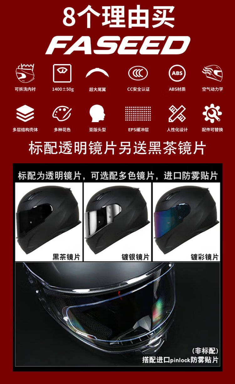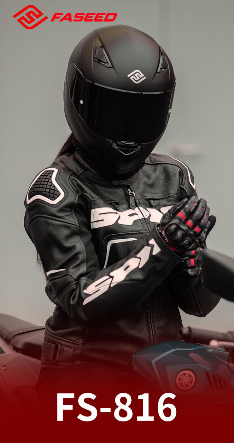 FASEED Full-face Motorcycle Helmet Men's Retro Women's Motorcycle Street Car Sports Car Single Lens 3C Certified Four Seasons 816 Matt Black (Same Style as Huang Yimei, Standard Transparent Film), Free Colored Film + Anti-fog Sticker L (57-58) Head Circumference
