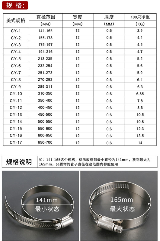 Each bear 304 live buckle stainless steel hose clamp tie width 12MM pipe buckle fixing screw can be loosened and retracted metal tie tie 12*145 diameter 21-38 5 prices