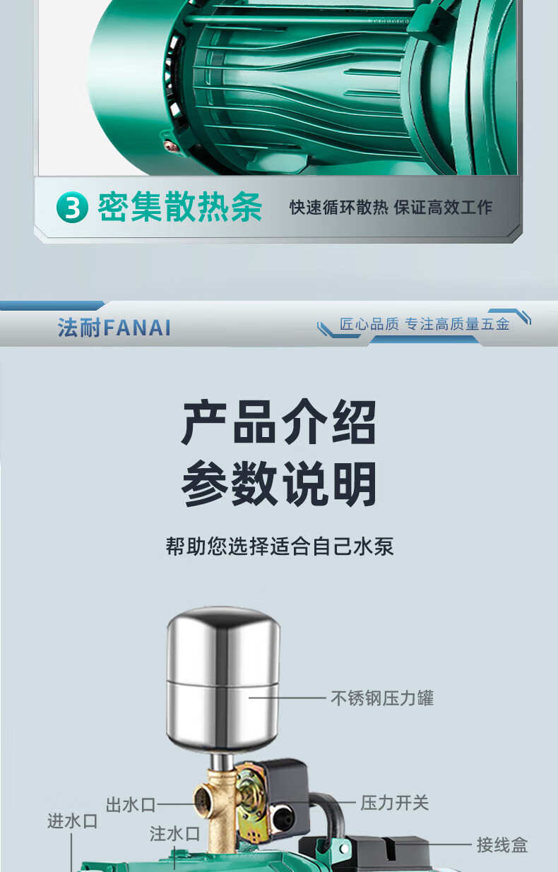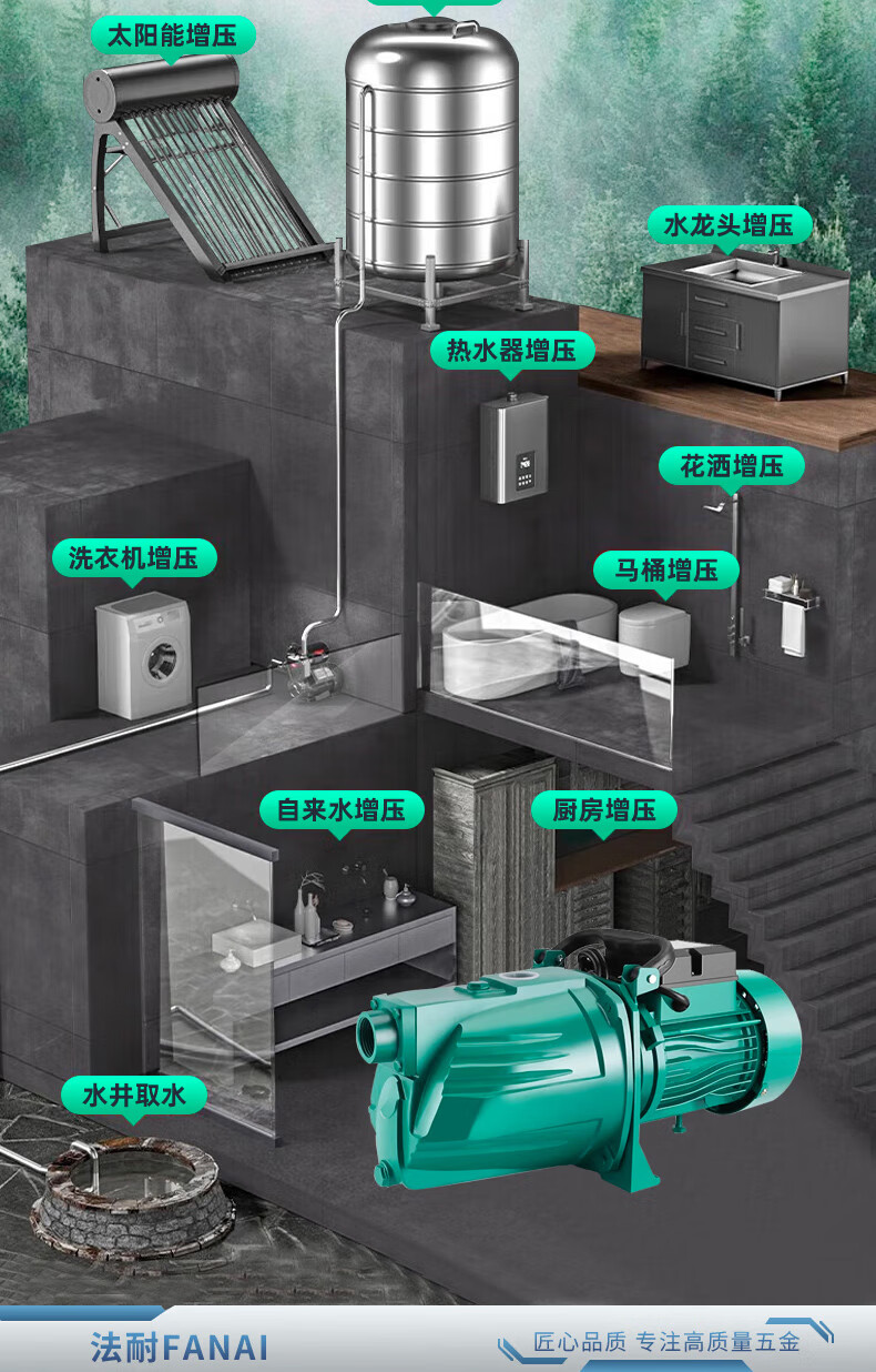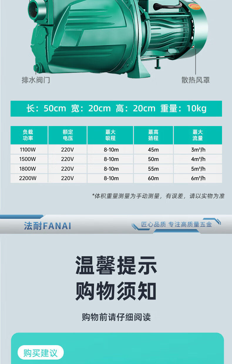 FANAI self-priming pump jet pump household fully automatic 220V high lift deep water well water pump suction booster pump well water cast iron pump head 2.2KW 6 cubic meter large flow