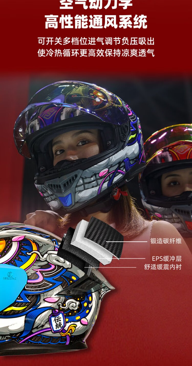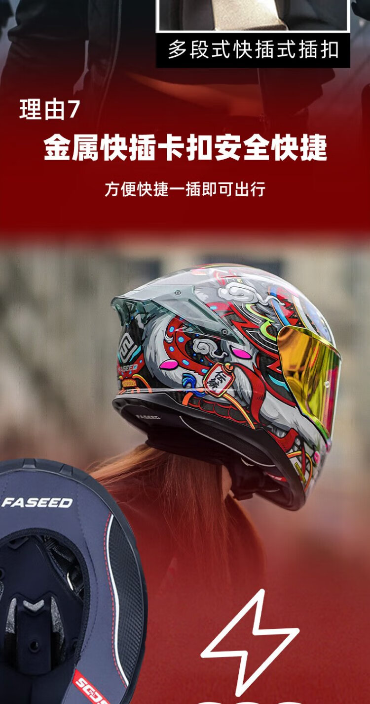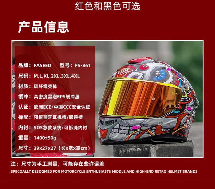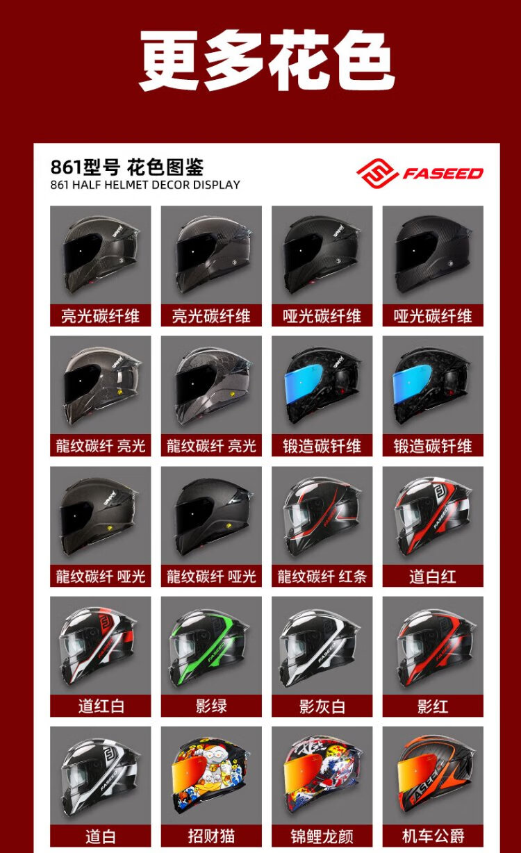 FASEED Full-face Carbon Fiber Helmet Men's 861 Motorcycle Racing Extra Large Double Lens Women's Anti-fog Four Seasons Xingshi/Zhongyi (Free Plating Sheet + Anti-fog Sticker + Headgear + XGP-X10 Headphones M (55-56) Head Circumference