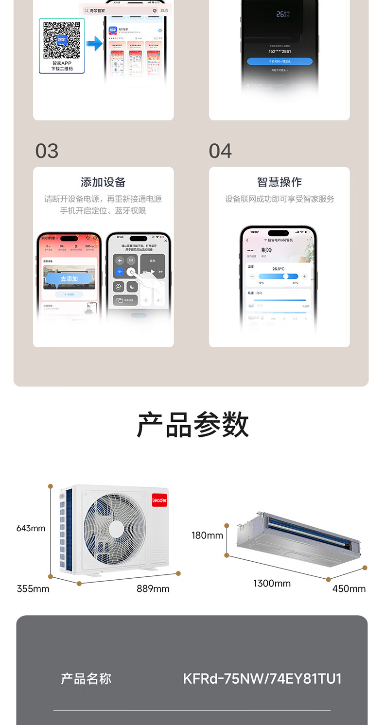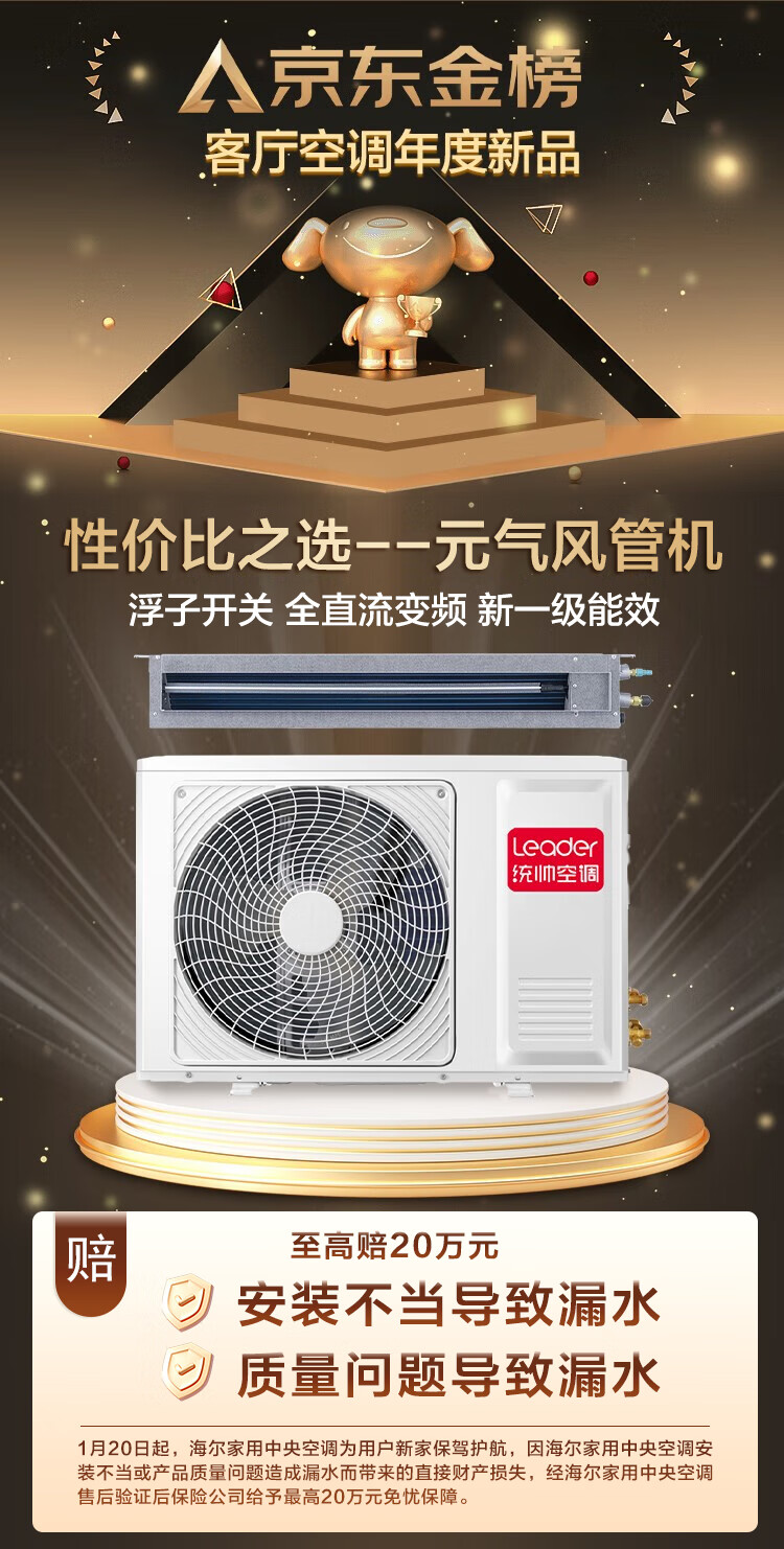 Haier offers a 15% renewal subsidy for the central air-conditioning duct machine produced by Zhijia, one-to-one household use, first-class energy efficiency, full DC inverter living room air conditioner, one-price all-inclusive leader Yuanqi 3 HP 3-horse first-class energy efficiency Leader Yuanqi series