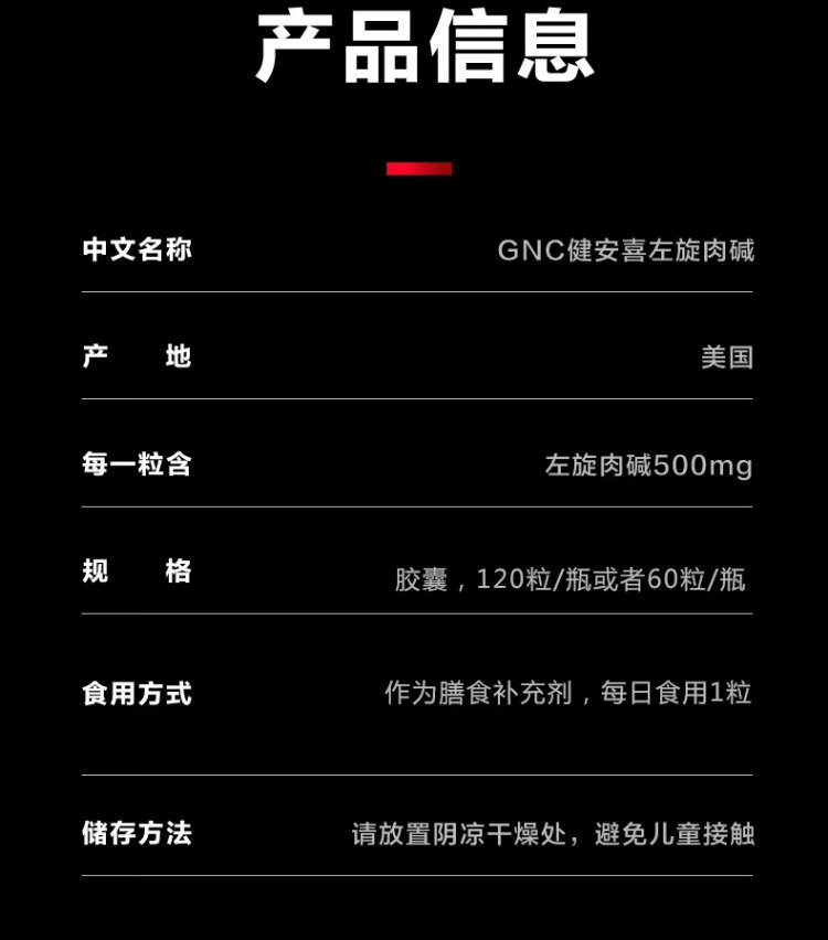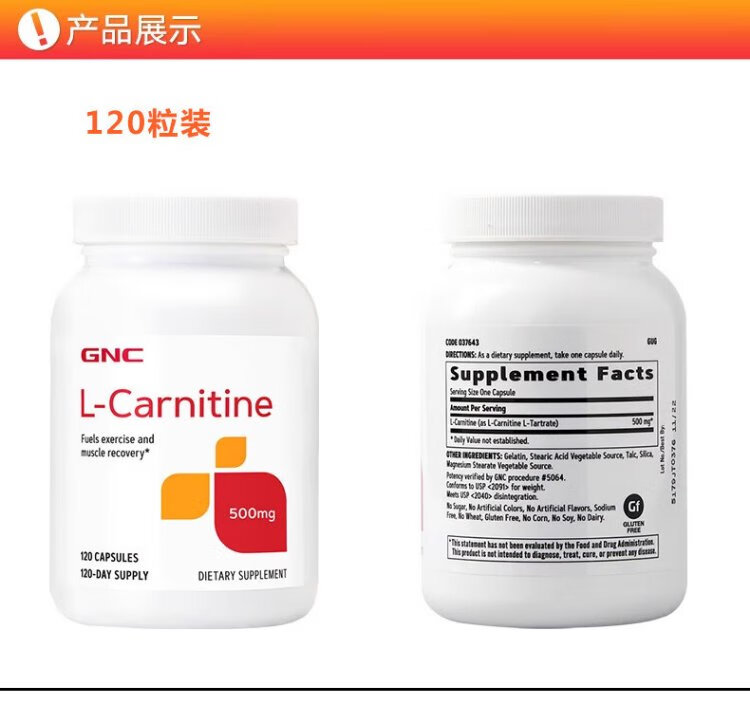 GNC L-carnitine nutrient l-carnitin stubborn men and women sports fitness supplement body shaping 500mg L-carnitine capsule (sports type) 60 capsules * 1 bottle