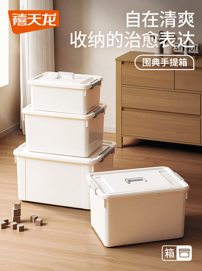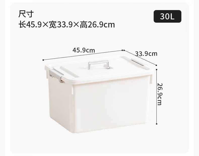 Xitianlong thickened large storage box organizer household small toys snack mask storage box portable storage box 30L white 45.9*33.9*26CM 1 pack can be carried