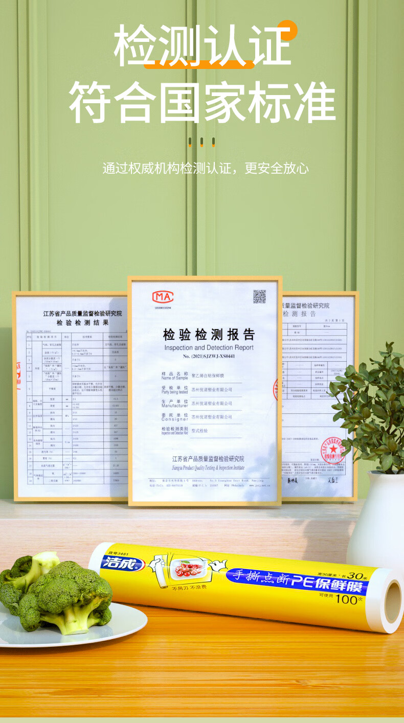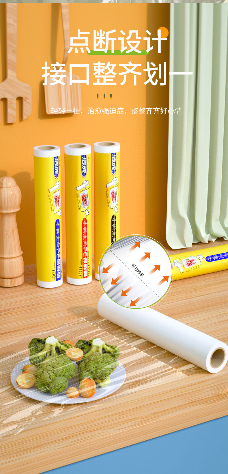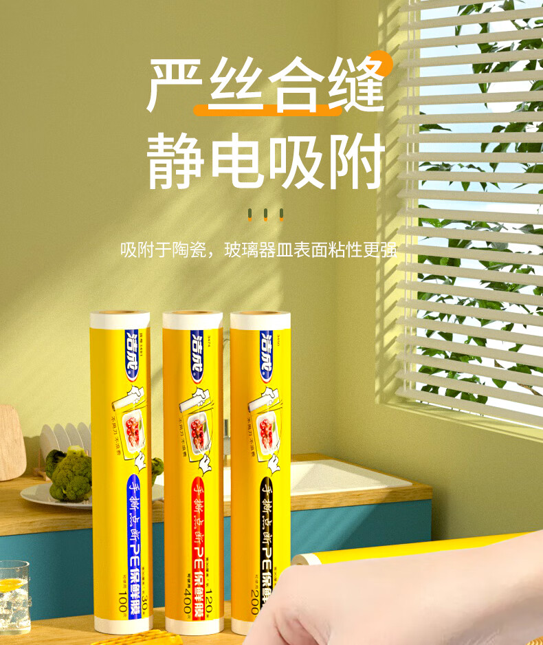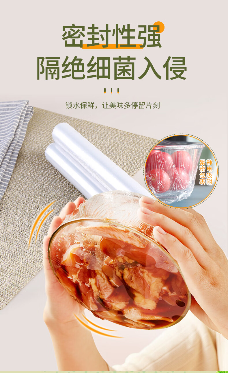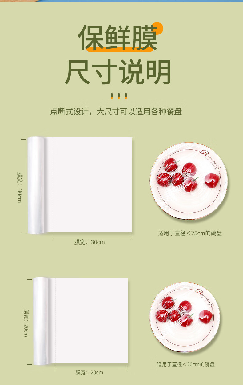 Jiecheng food grade cling film breakpoint large roll easy to tear refrigerator microwave oven 30cm*120 meters can be peeled 400 times