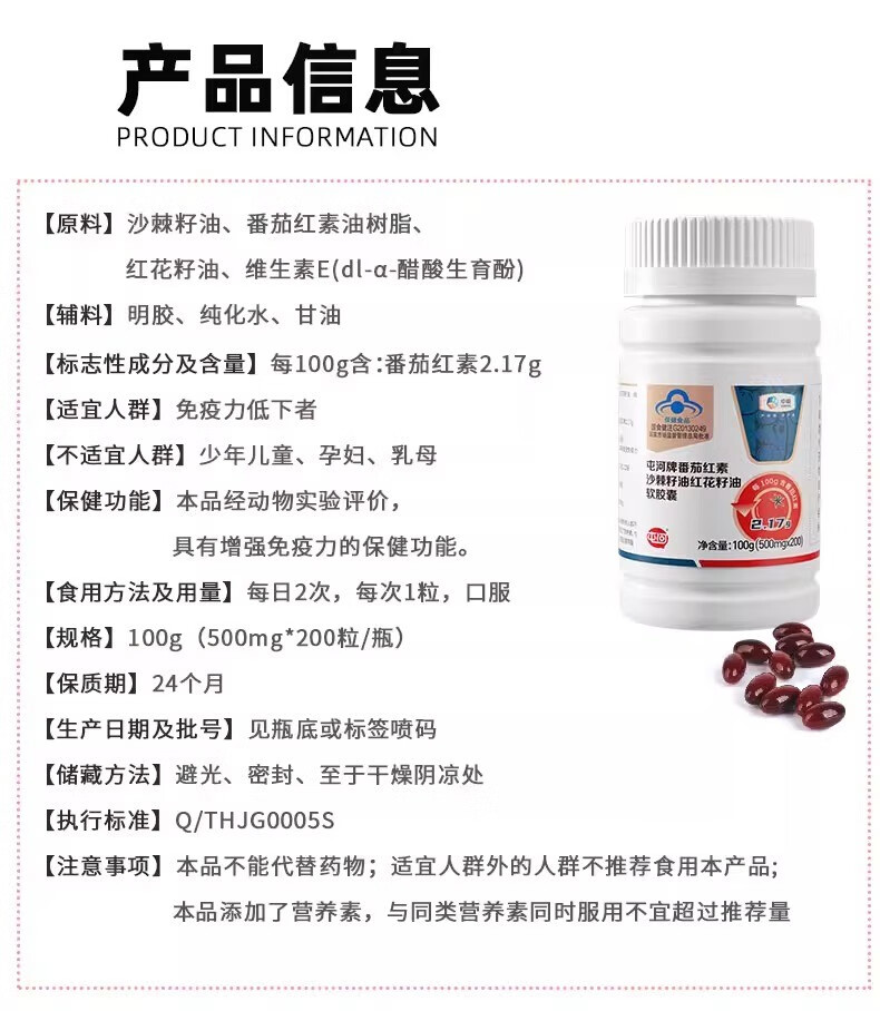 Tunhe COFCO Lycopene Sea Buckthorn Seed Oil Safflower Seed Oil Soft Capsule Male Immunity Enhancement Female Health Care Products Fashunfeng 200 capsules*1 bottle Consult customer service for more benefits