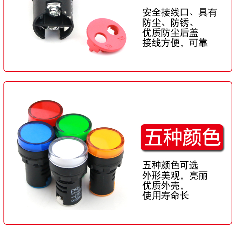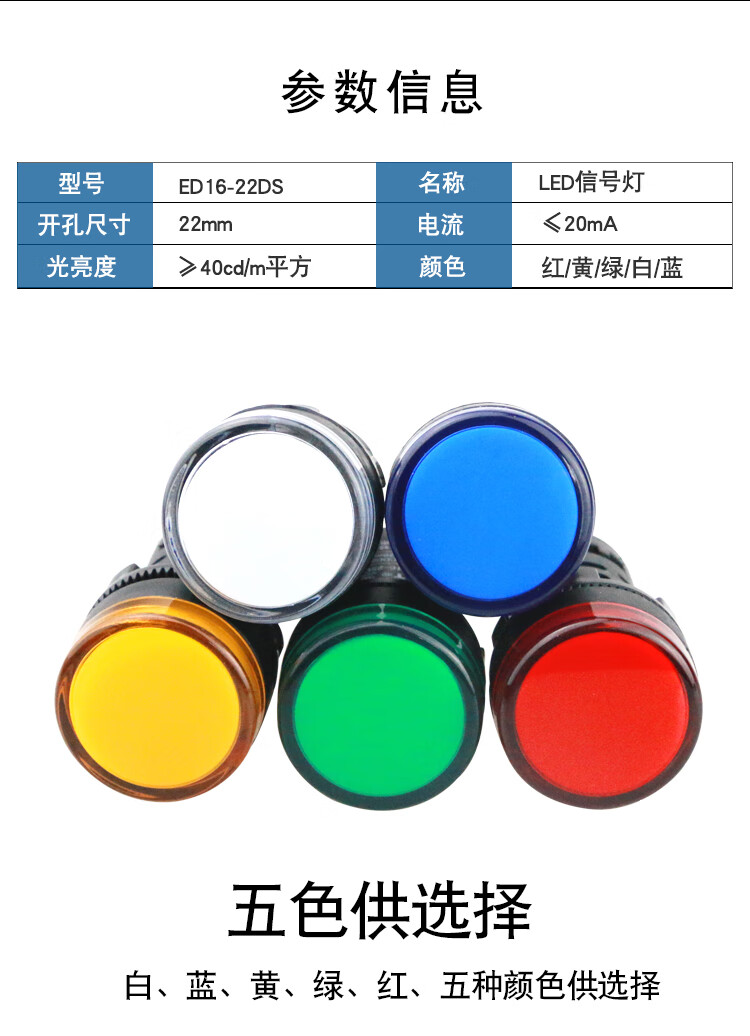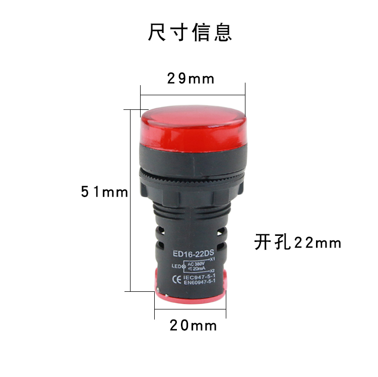 LED signal light power indicator AD/ED16-22DS 12V24V 220V380V 22MM red, green, yellow and blue green AC 380