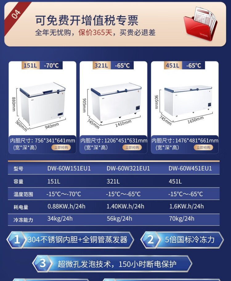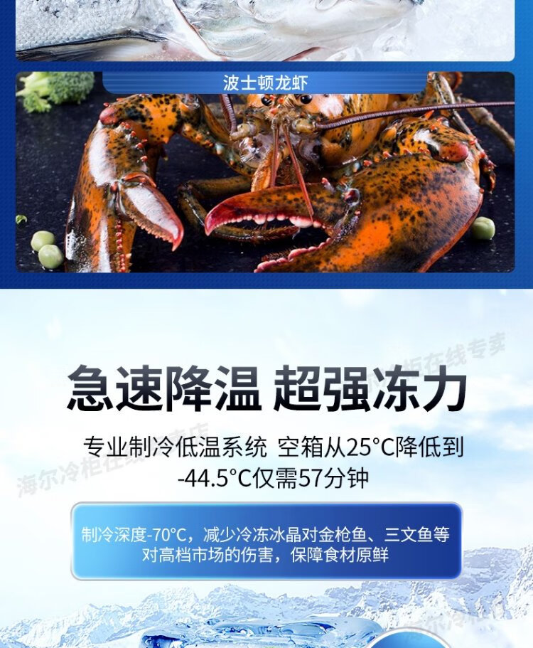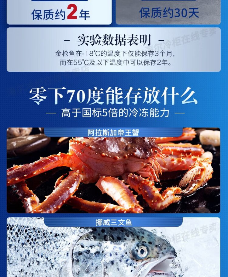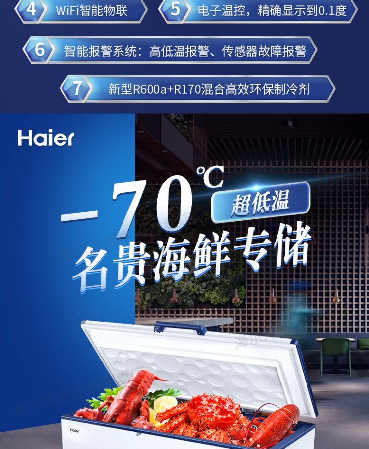 Haier ultra-low temperature freezer household sub-zero-60/70 degree commercial large-capacity tuna-specific freezer seafood deep-freezing quick-freezing refrigerator freezer laboratory low-temperature freezer-70 degree frozen tuna DW-60W151EU1151L
