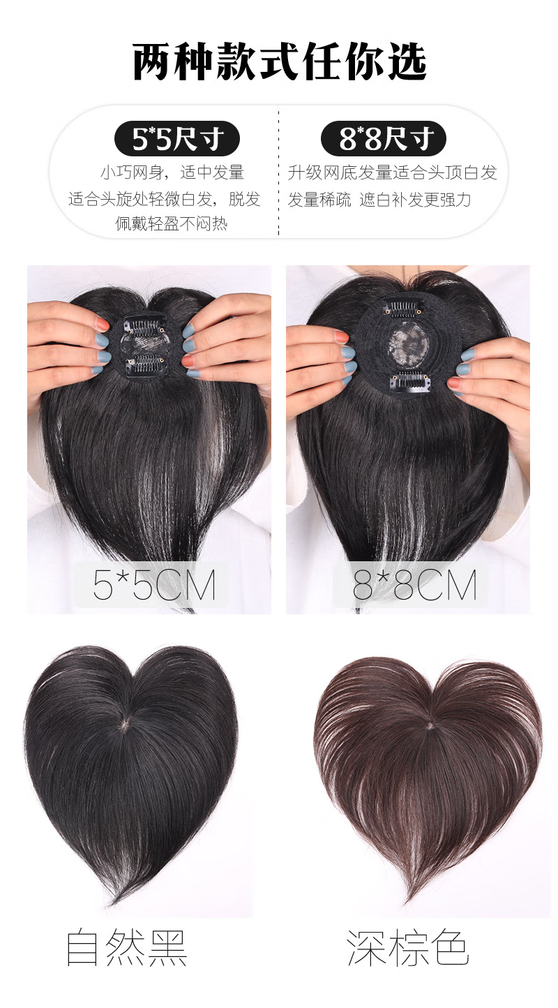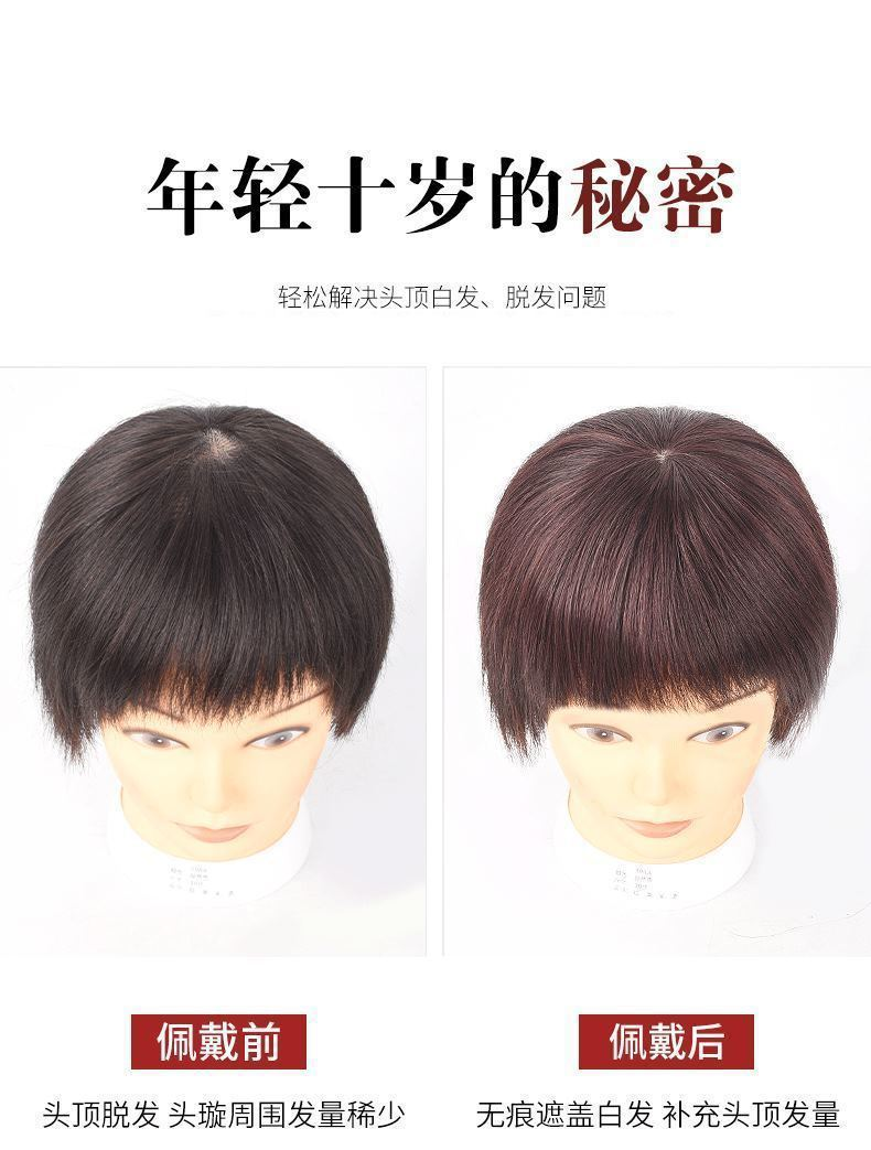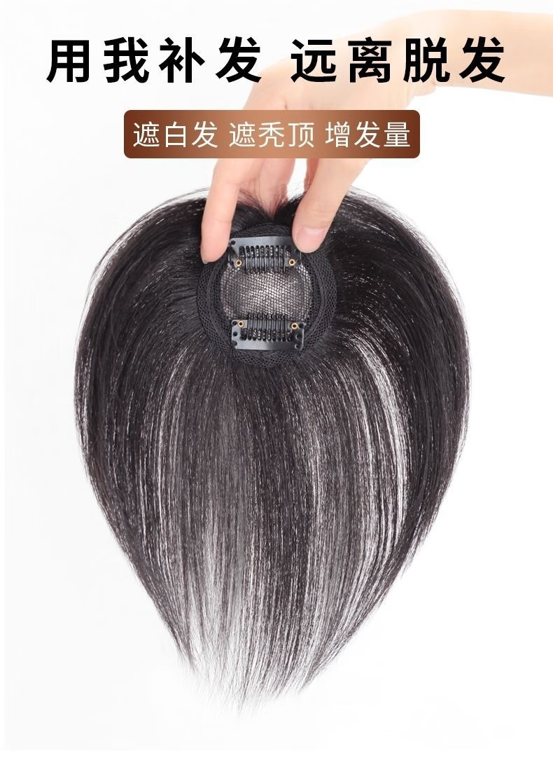 Tangni wig women's top hair replacement piece one piece partial head cover white hair replacement piece mini realistic natural wig artificial hair B015 two-card delivery needle 15cm natural black