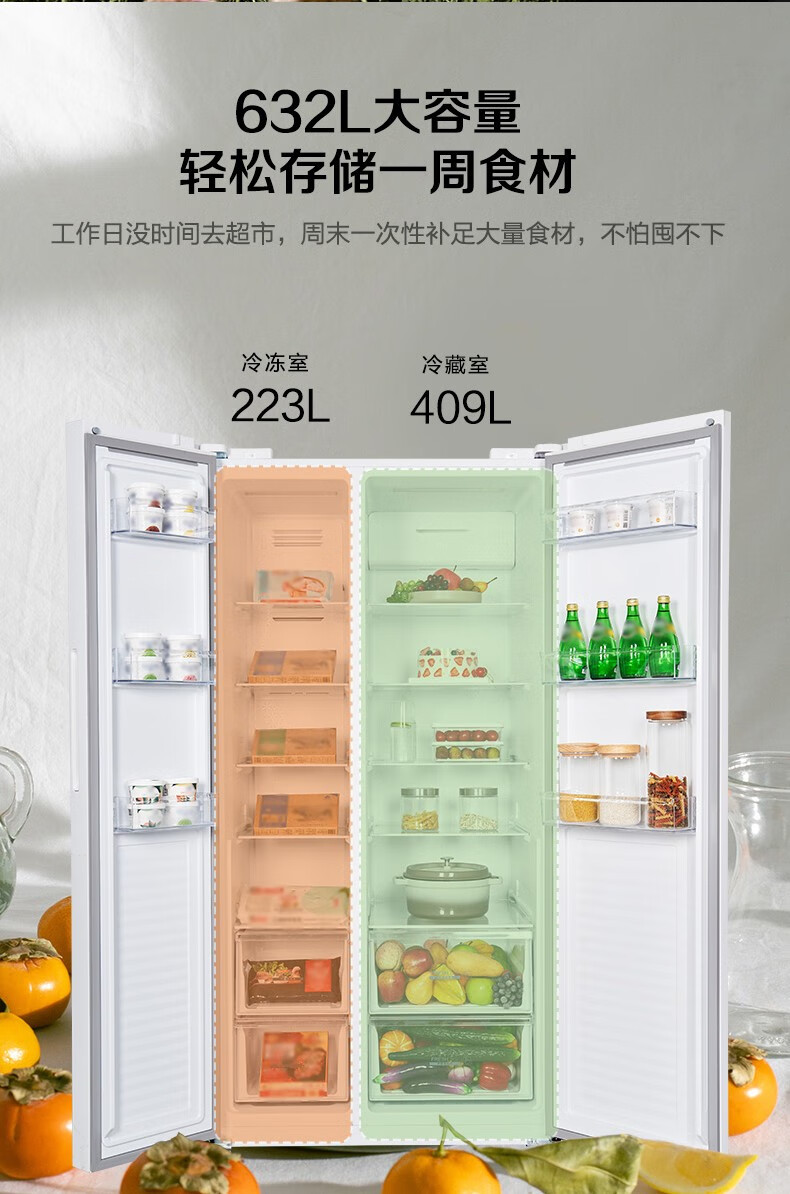 Panasonic side-by-side refrigerator 632L large capacity first-class energy efficiency silver ion odor purification and sterilization NR-EW63WSA-W NR-EW63WSA pearl white 632L first-class energy consumption