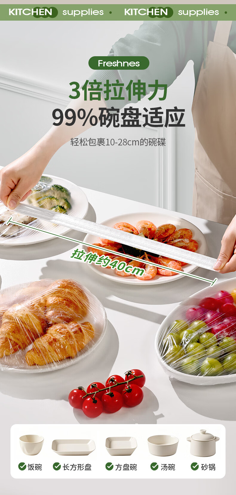 Yunlei cling film cover thickened kitchen disposable cling film cover refrigerator microwave oven fresh-keeping bag fresh cover box 100 pieces