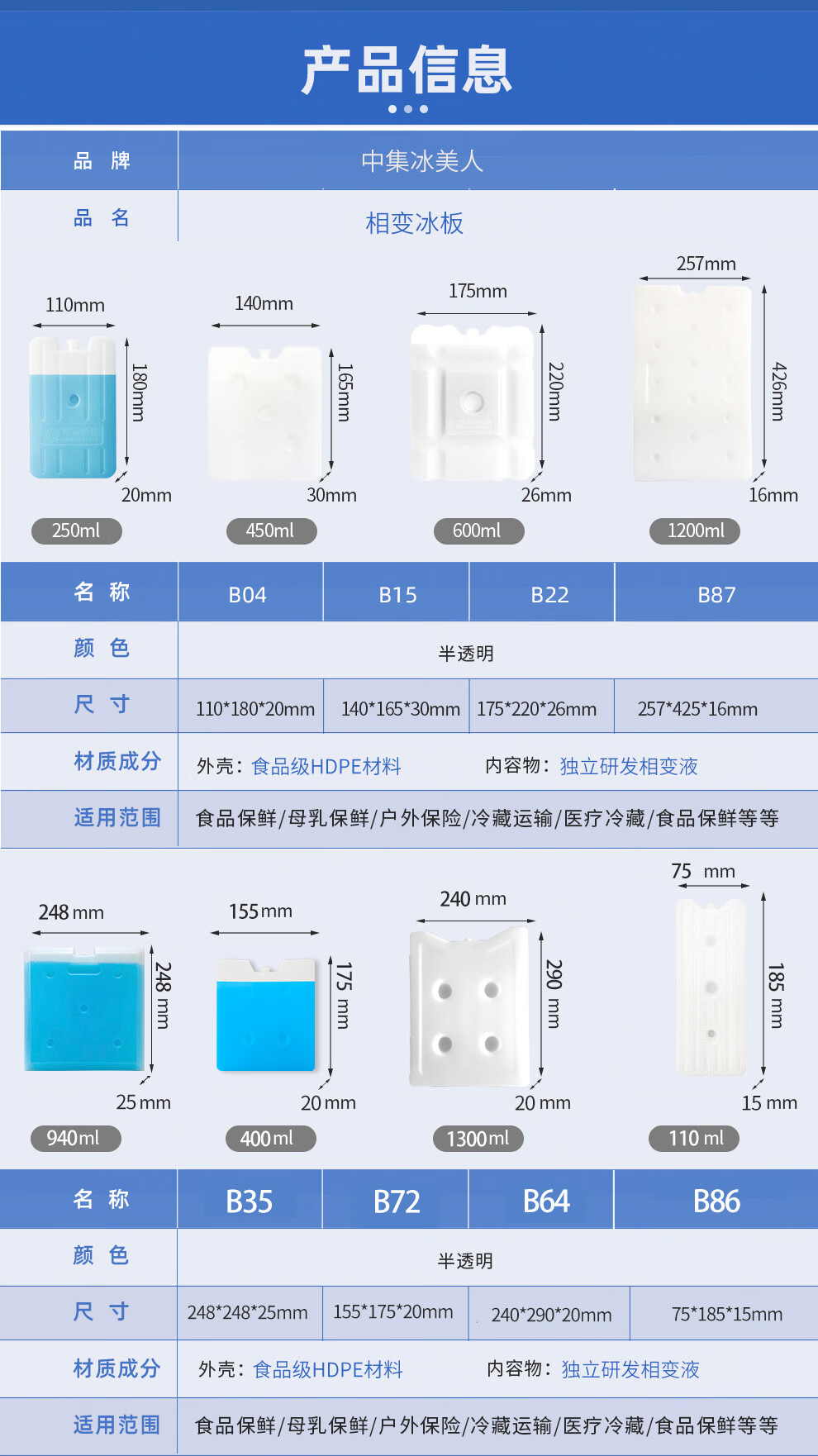 Ice Beauty refrigeration and preservation, water-free ice plate, ice row, reusable fresh drinks, air-conditioned fan ice box, blue ice crystal box (2 pieces) B87-ice plate 1200ml