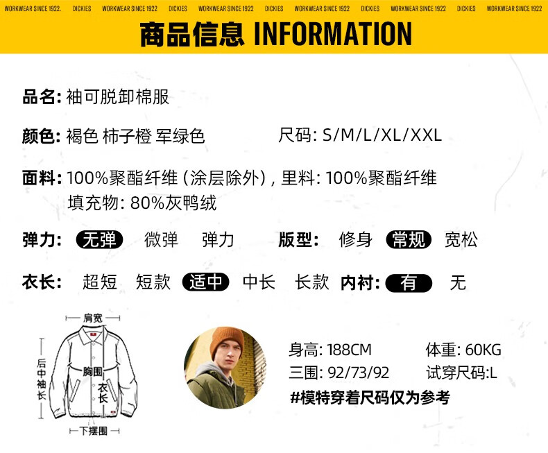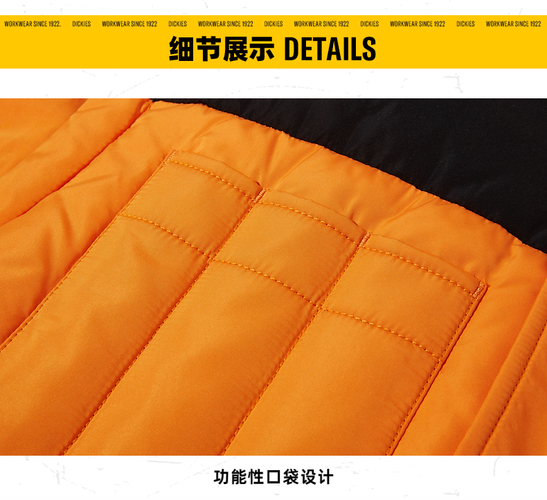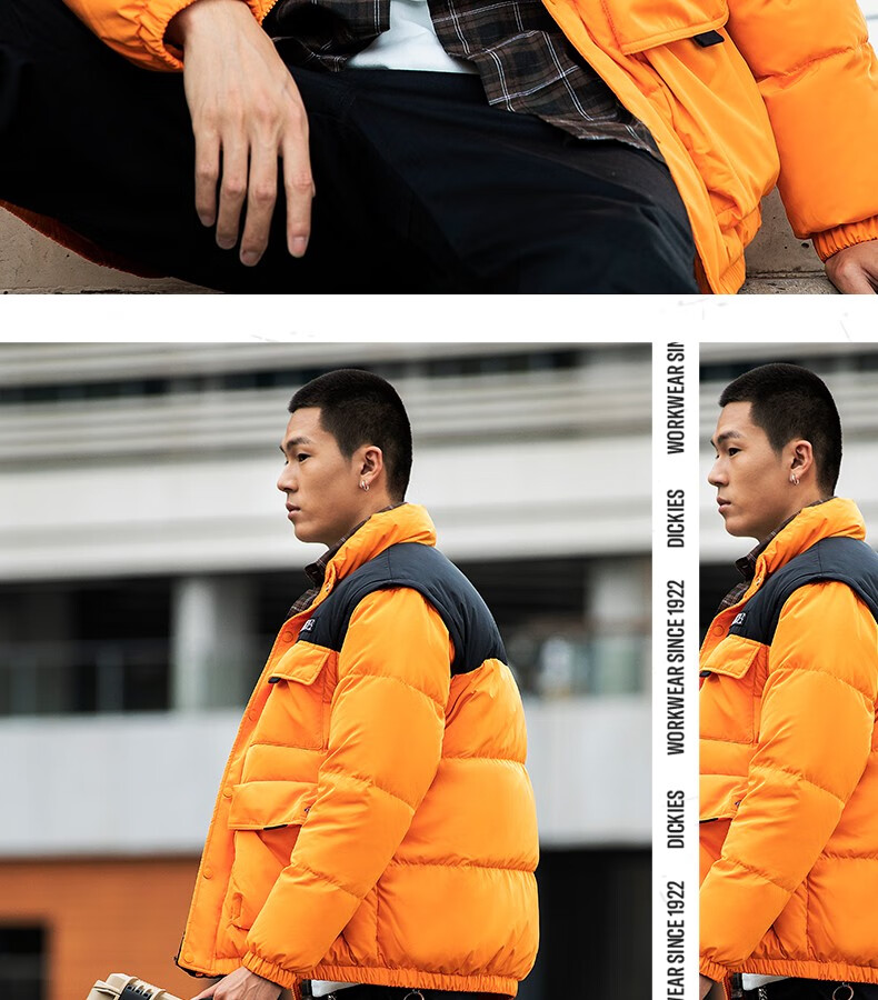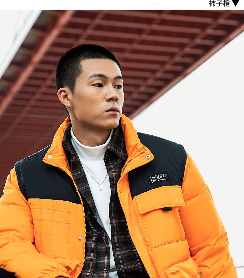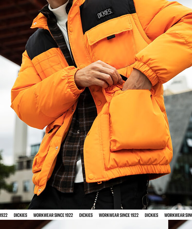 Dickies down jacket multi-pocket basic jacket Men's casual all-match thickened jacket 9460 Persimmon Orange (Loose version) S Down filling 165 grams