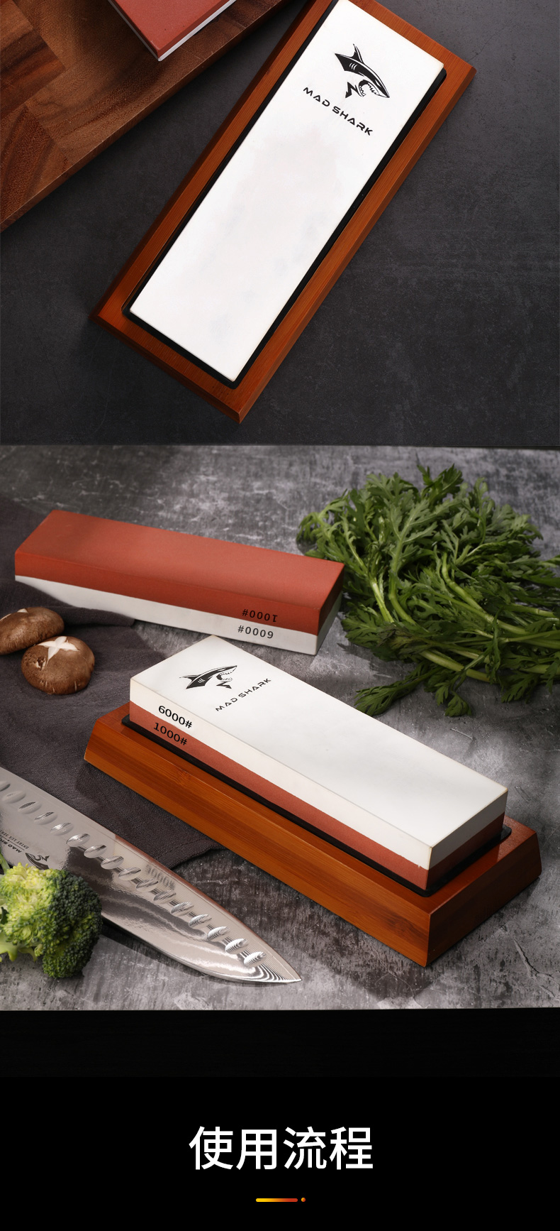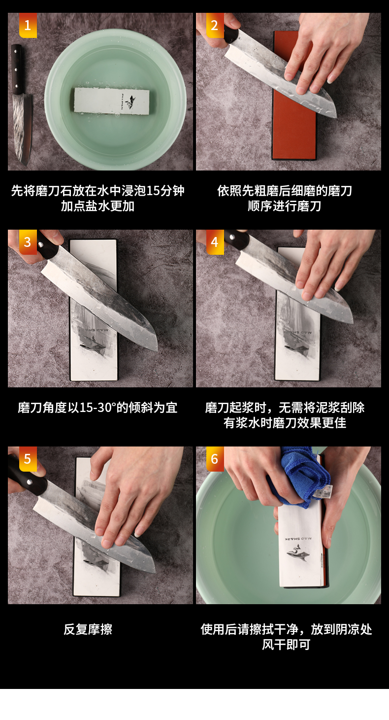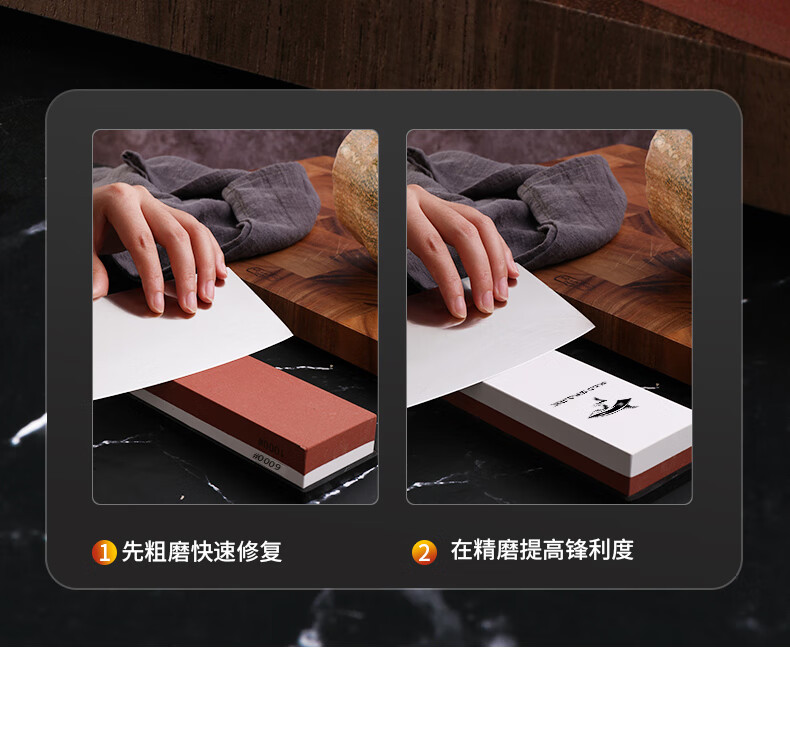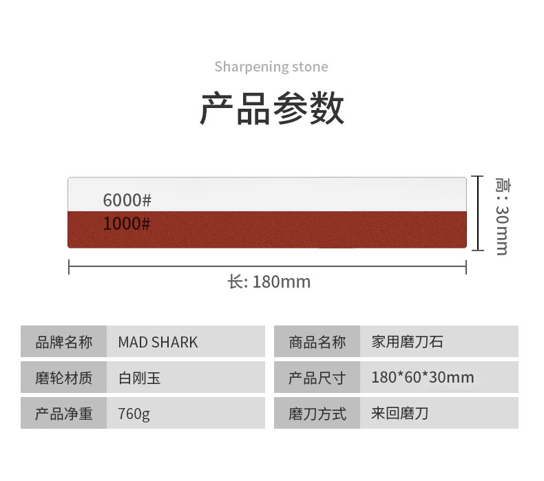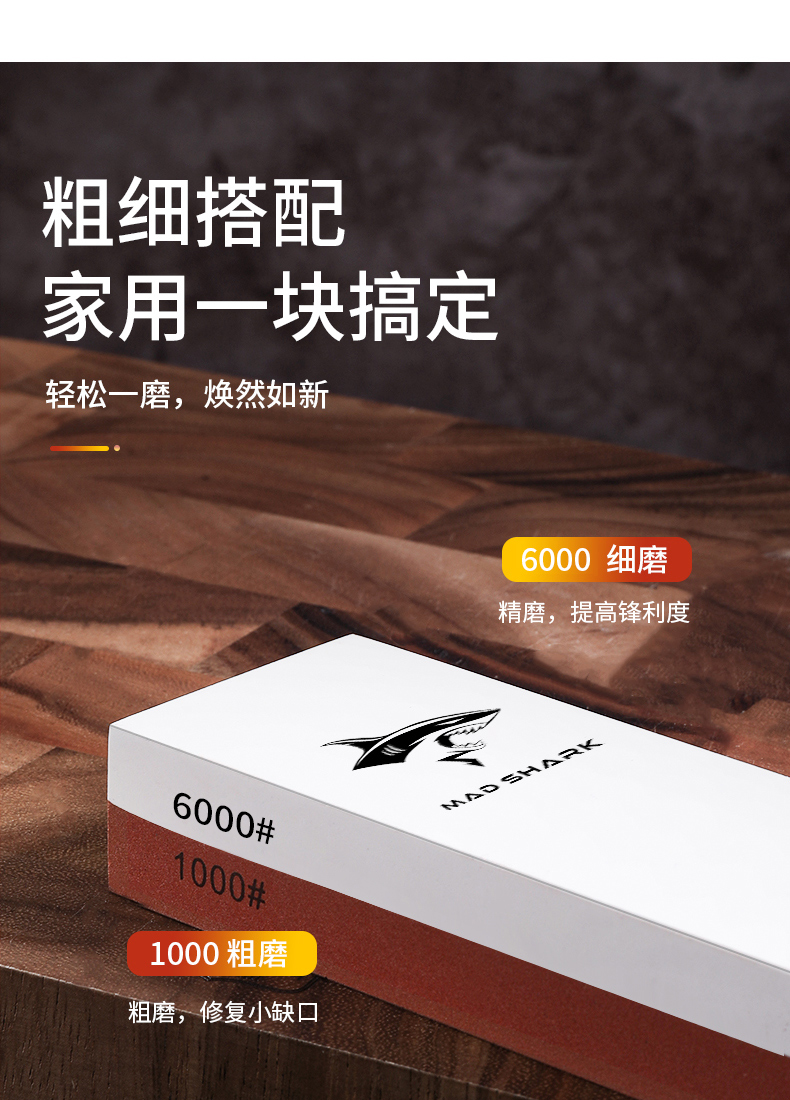 MAD SHARK German imported double-sided sharpening tool sharpening stone household anti-slip fine grinding coarse sharpening tool multifunctional 1000/6000 mesh white corundum sharpening stone + bamboo base