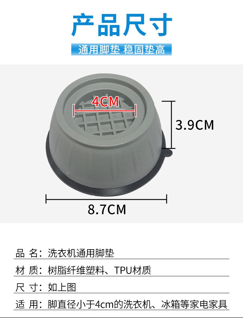 Taoxingsheng suitable for Haier Little Swan LG Panasonic Siemens universal drum pulsator washing machine foot pad base heightening anti-slip shock-absorbing holder base balance pad universal heightening foot pad 4 pack, about 4cm high