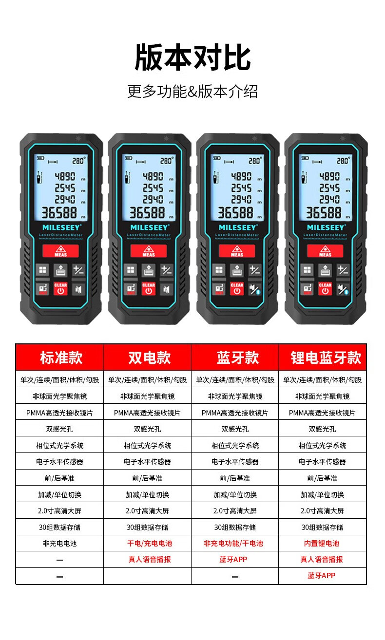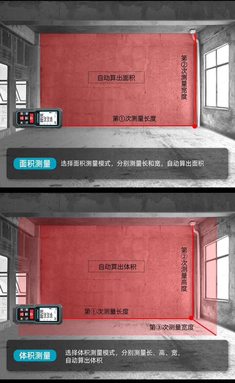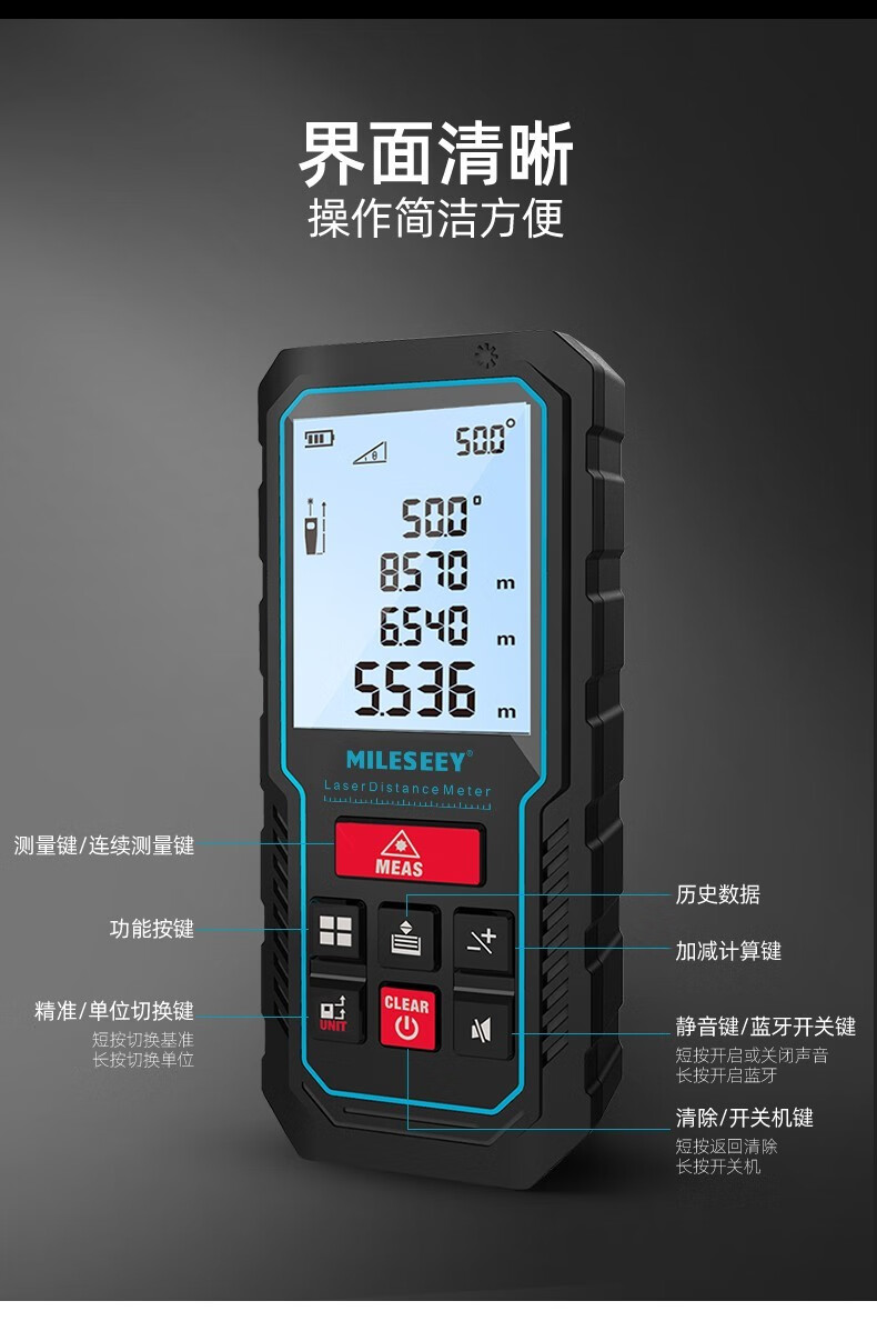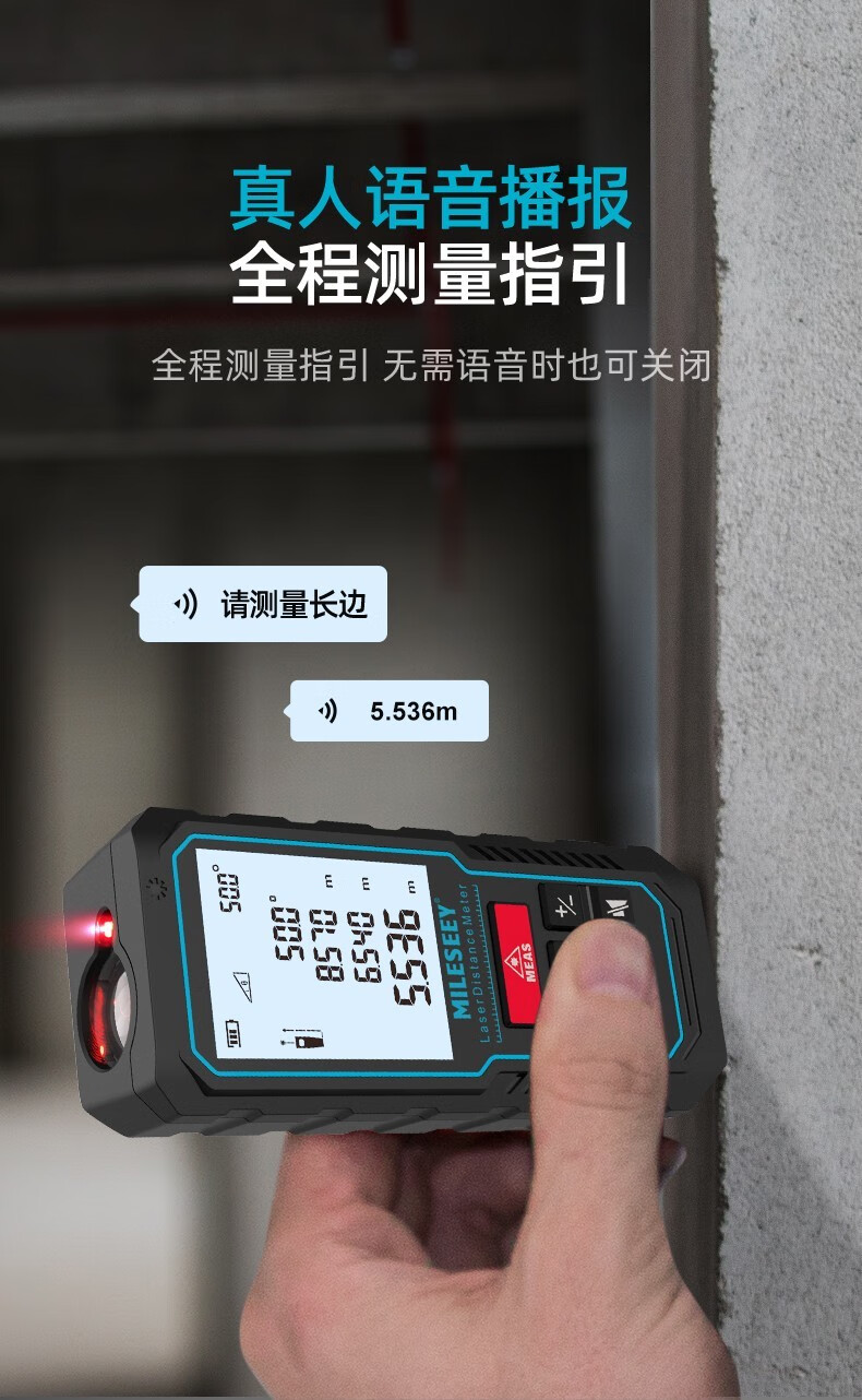 MiLESEEY S2 laser rangefinder handheld high-precision portable electronic ruler infrared measurement electronic ruler measurement tool dual-electric model 120 meters (charging + voice)