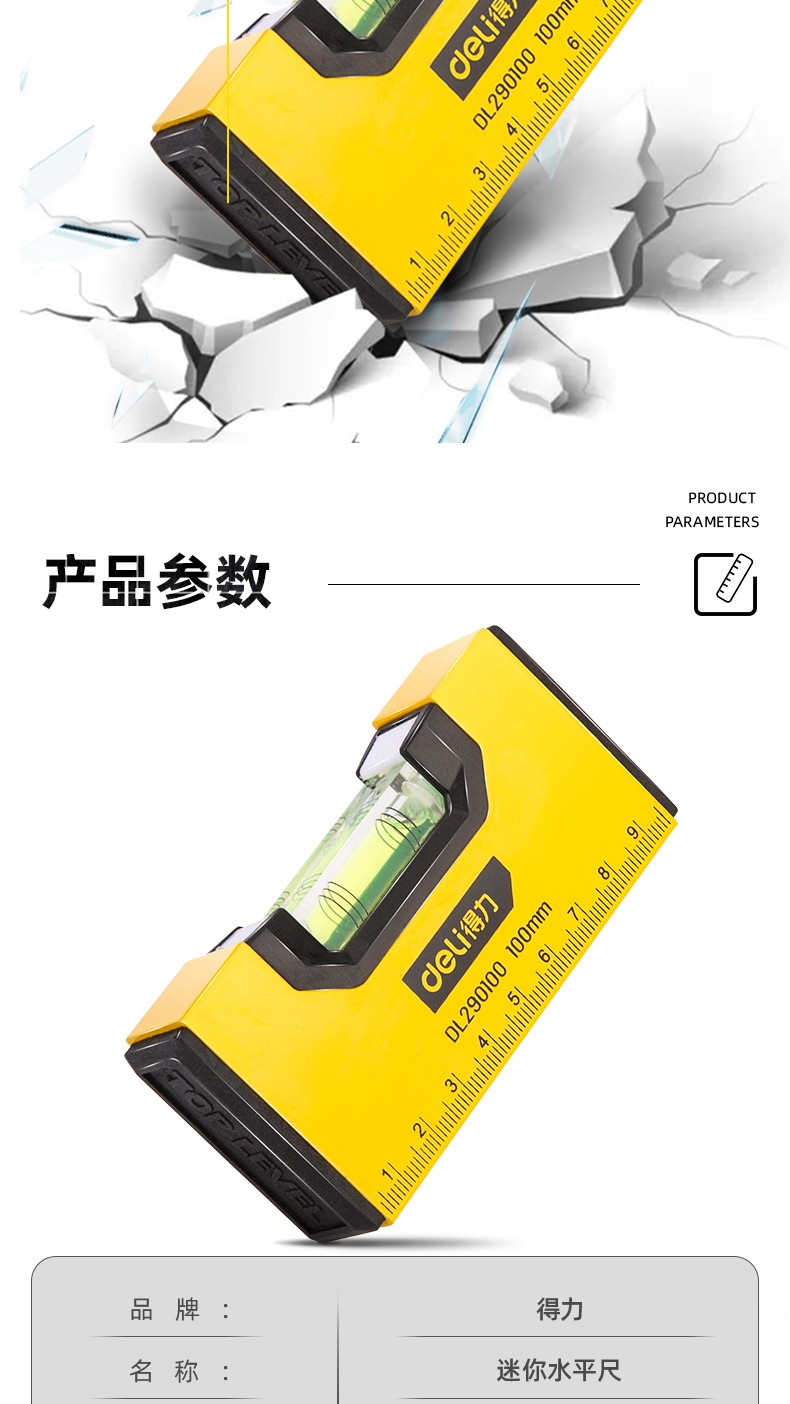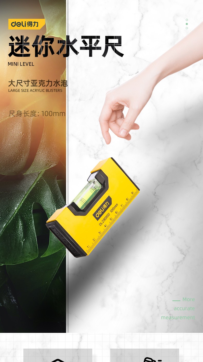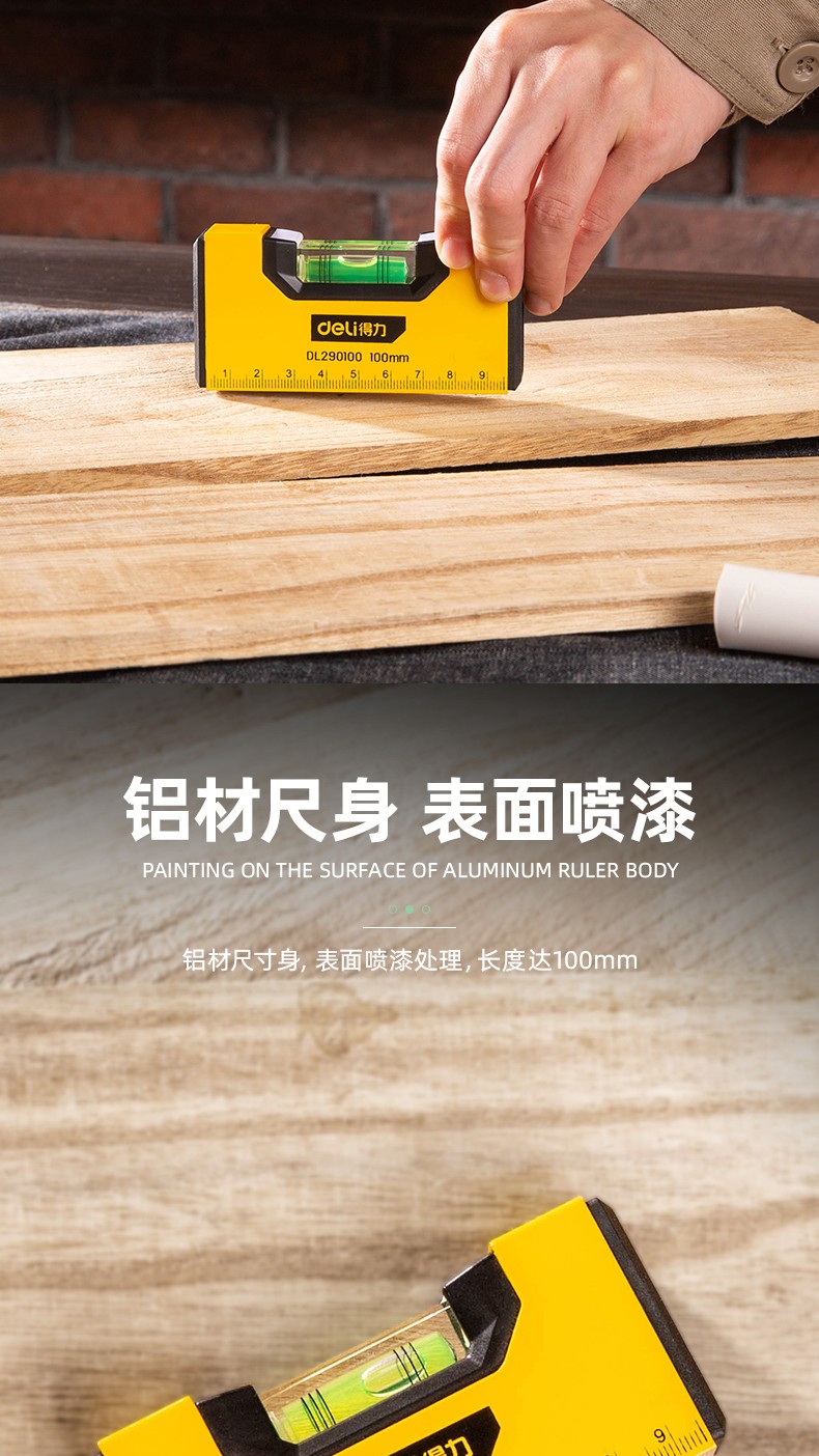 Deli (deli) level high-precision flat level ruler by ruler fan small aluminum alloy solid anti-fall balancer tool strong magnetic household mini level DL290100