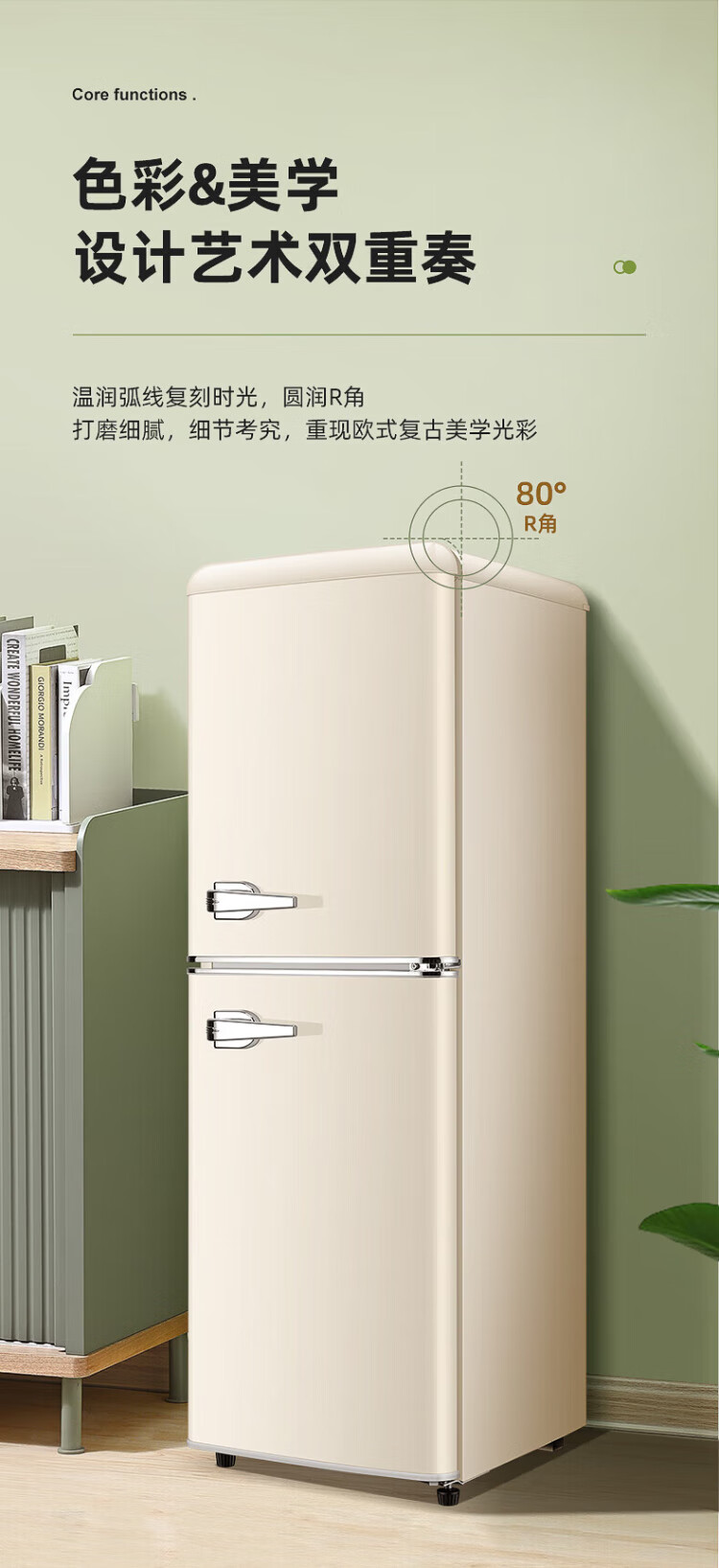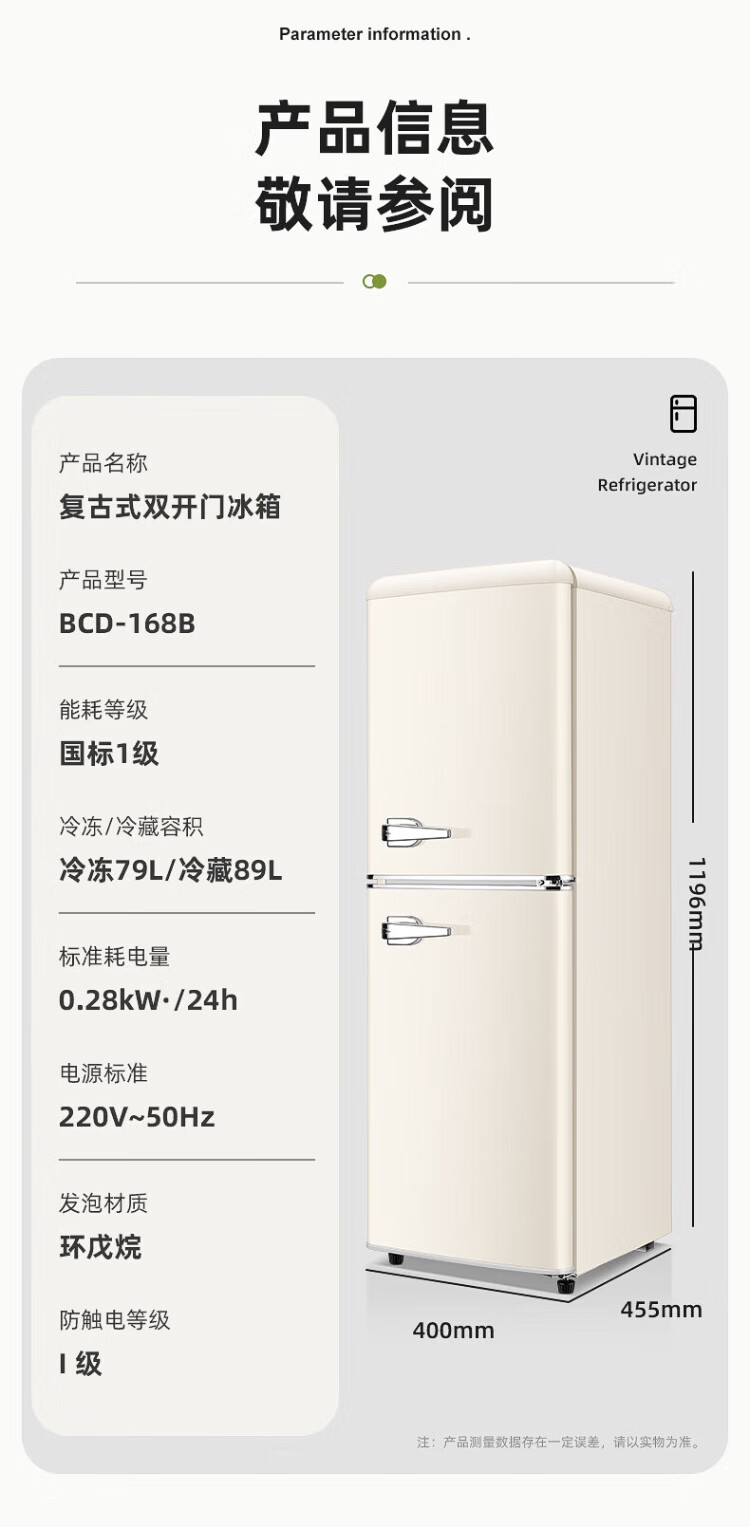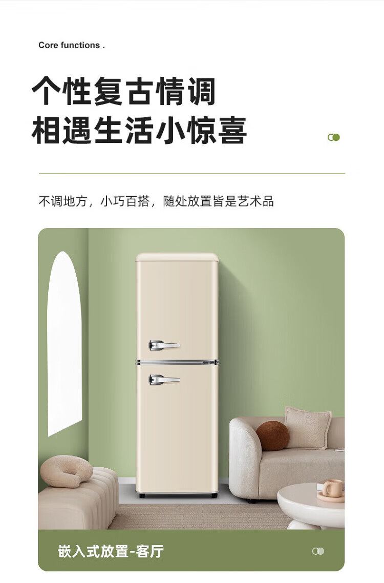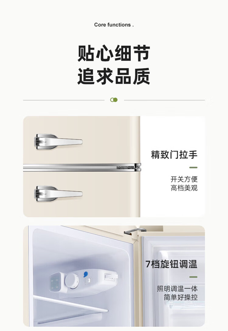 Chigo Cream White Refrigerator Double Door Retro Household Small First-Class Energy Efficiency Office Rental Refrigerator Freezer Fresh Preservation Quick-frozen Color Internet Celebrity Refrigerator Maternal and Infant Breast Milk Cosmetics 162L Yunman White Retro First-Class Energy Efficiency Double Door Refrigerator with Handle