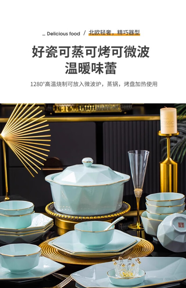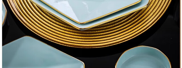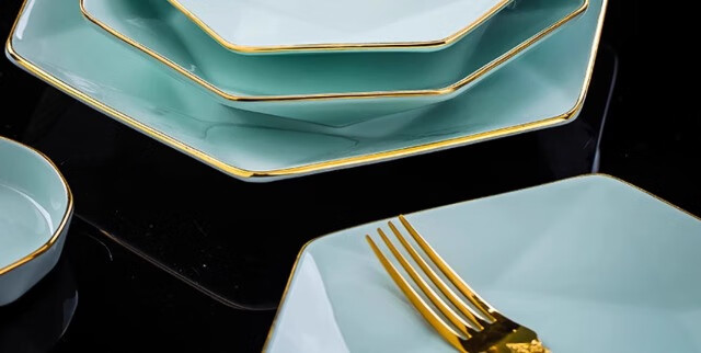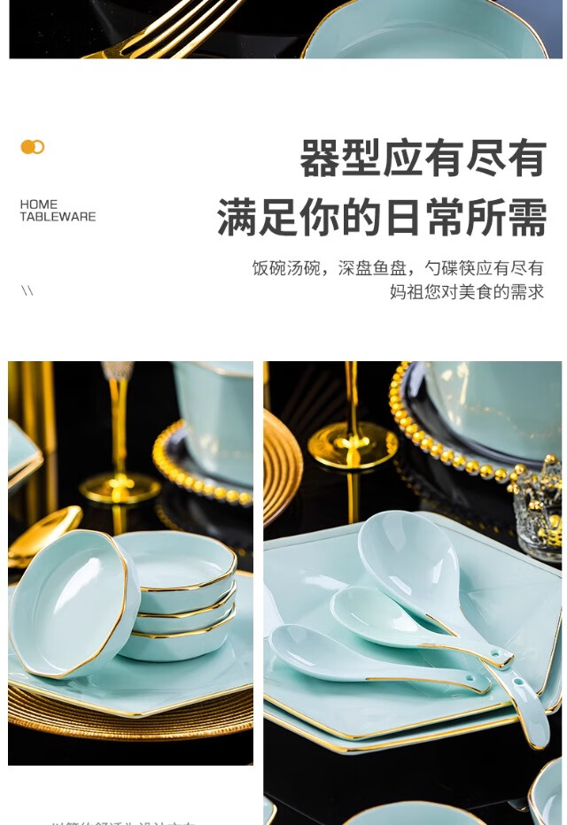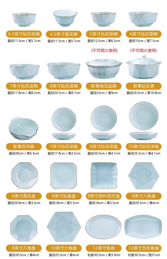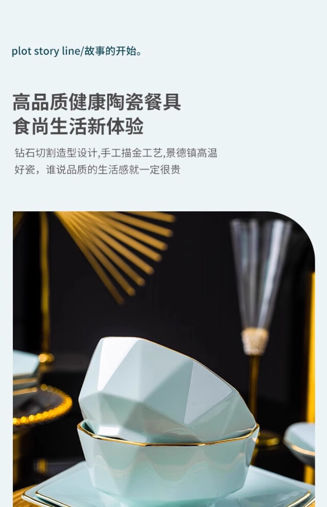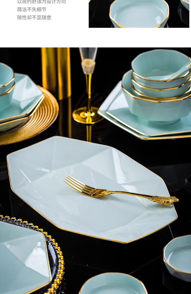 KANGQIN ins Nordic gold edge diamond bowl set creative Japanese solid color household ceramic rice bowl soup bowl large bowl instant noodle bowl gold painted shadow green 4.5 inch rice bowl 8 pack