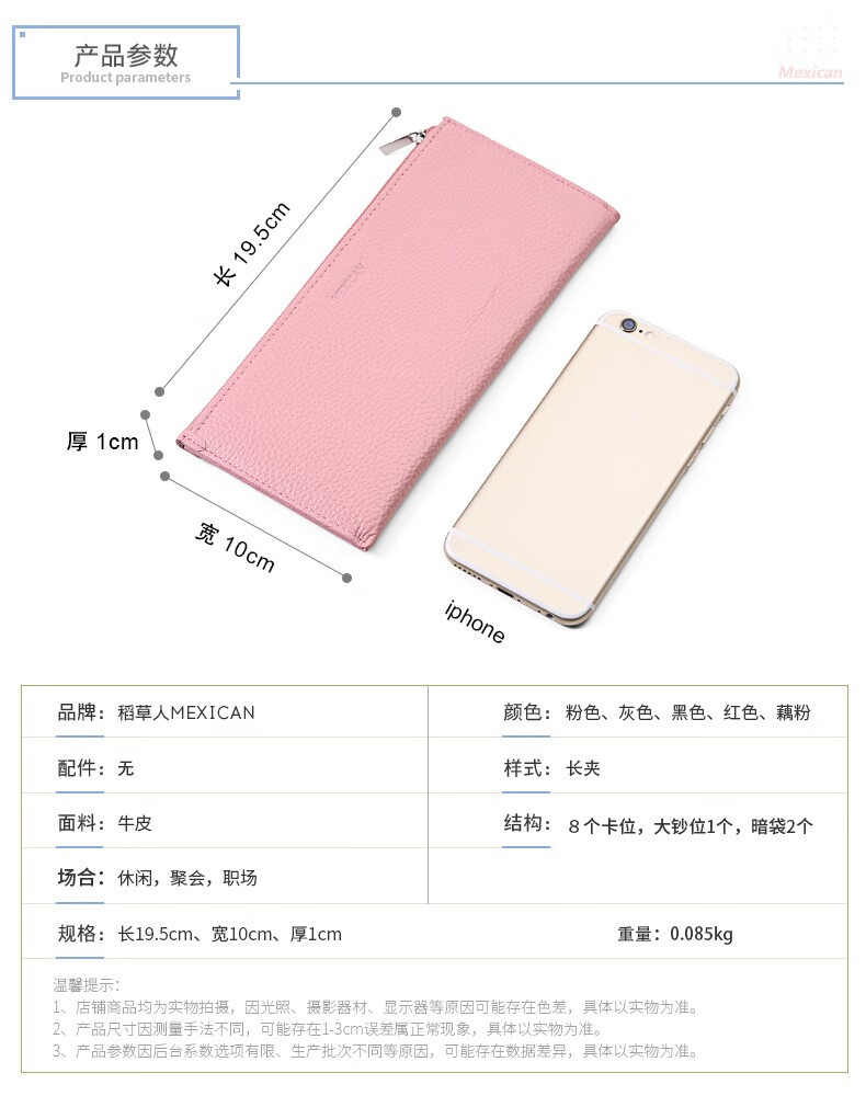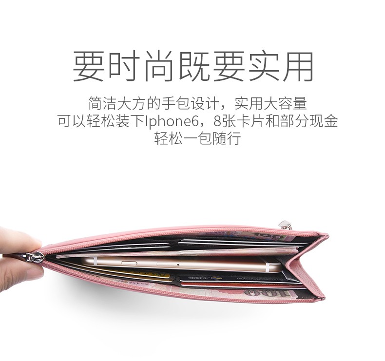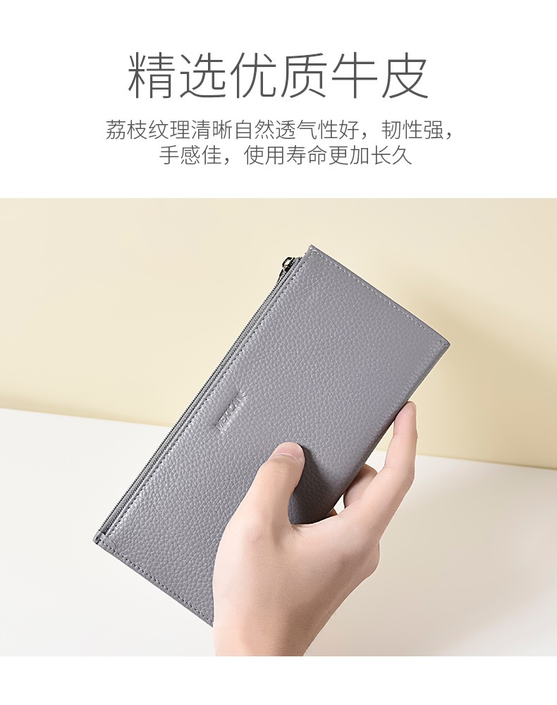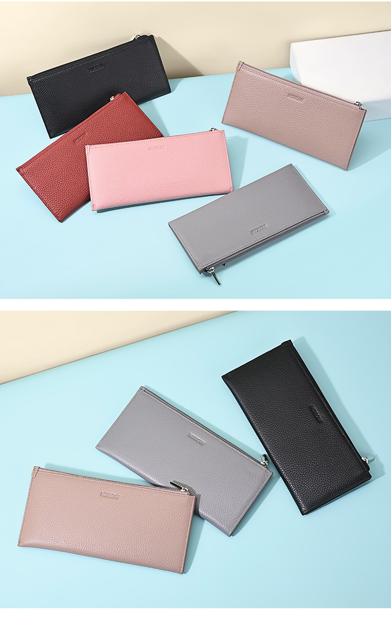 Scarecrow Women's Long Wallet Women's Genuine Leather New Fashion Simple Thin Cowhide Clutch Small Clutch Small Wallet Card Bag Black