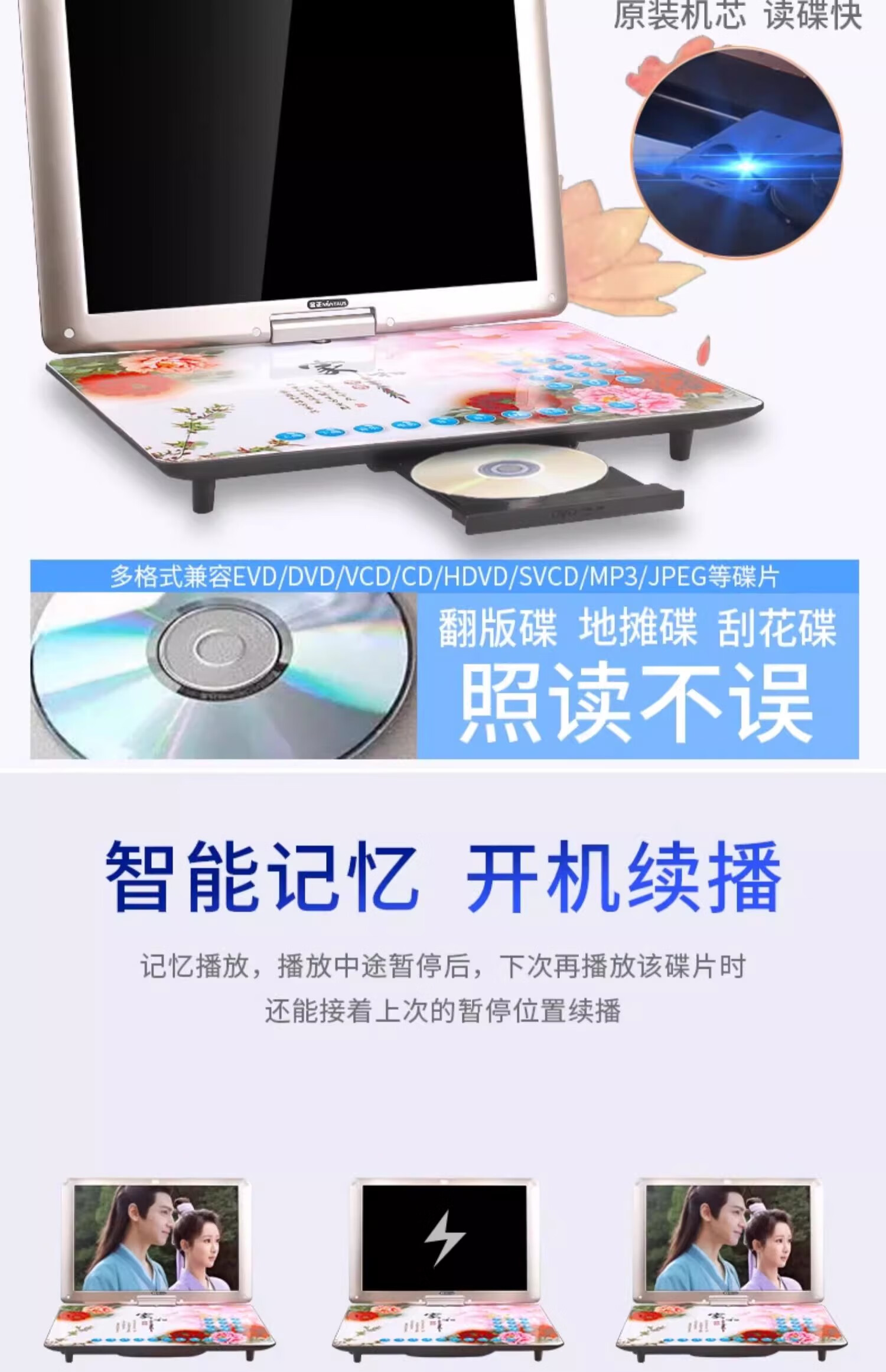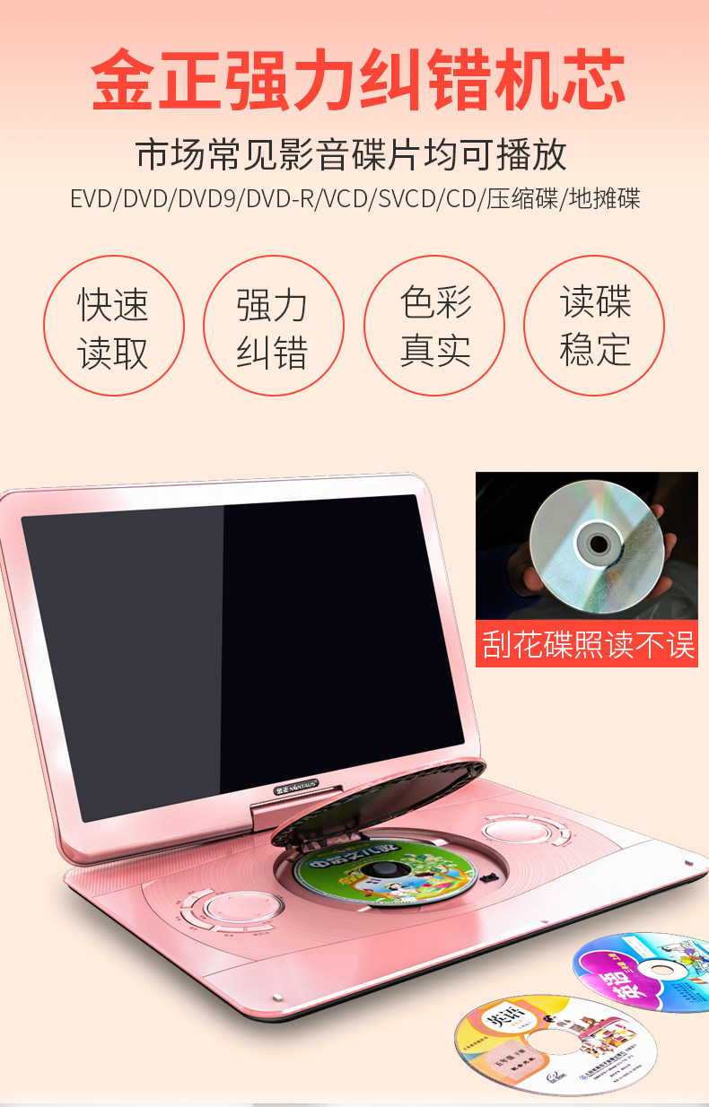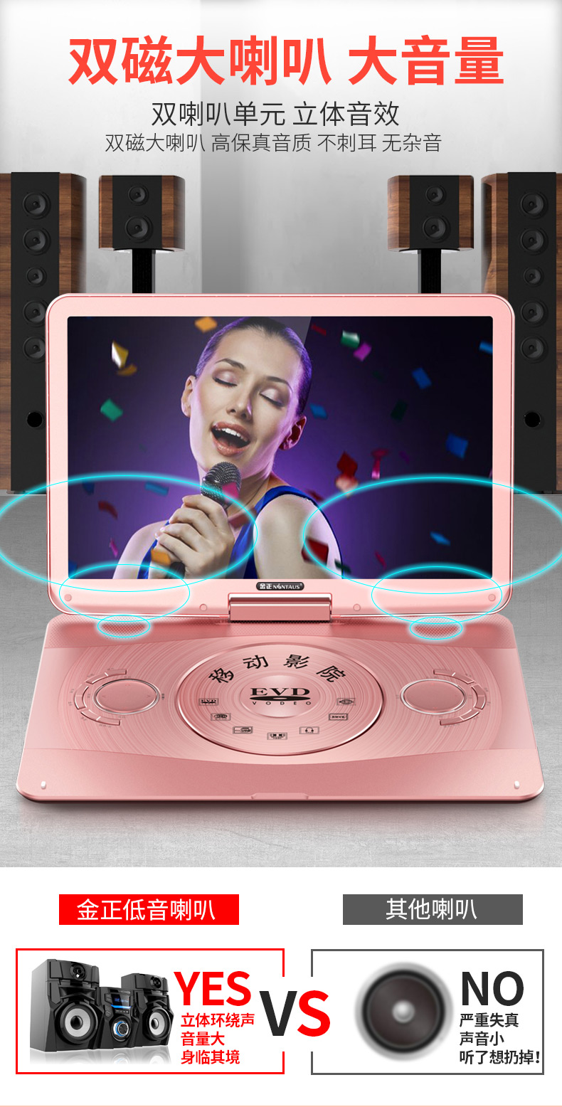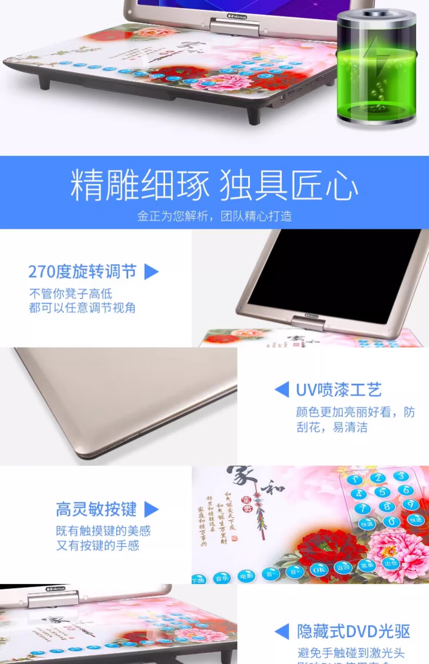 Jinzheng mobile DVD player integrated portable mobile TV vcd with small TV video disc player DVD player cd player video player disc player 12 flagship version (small screen) standard