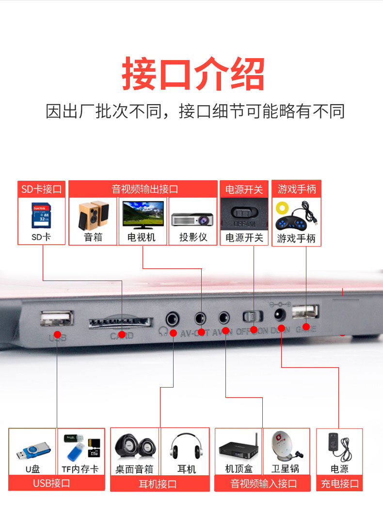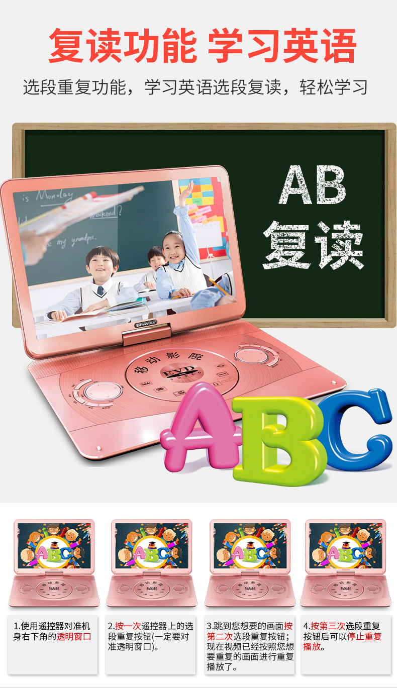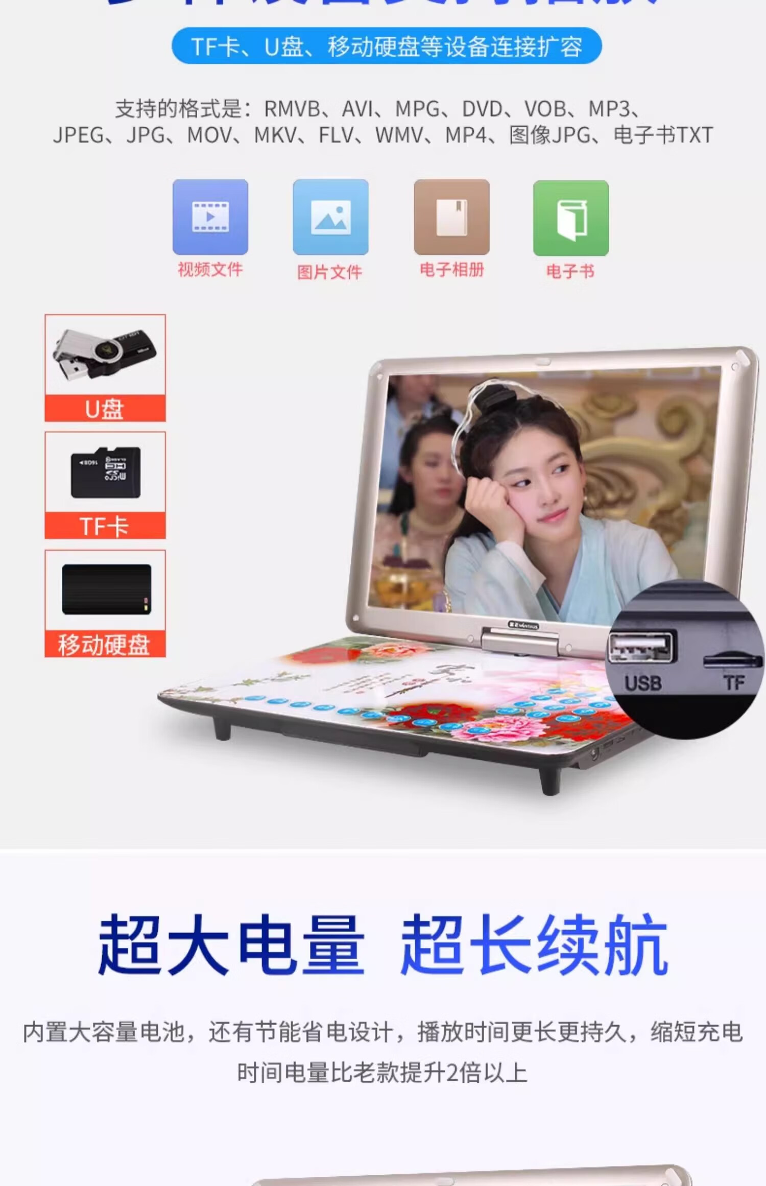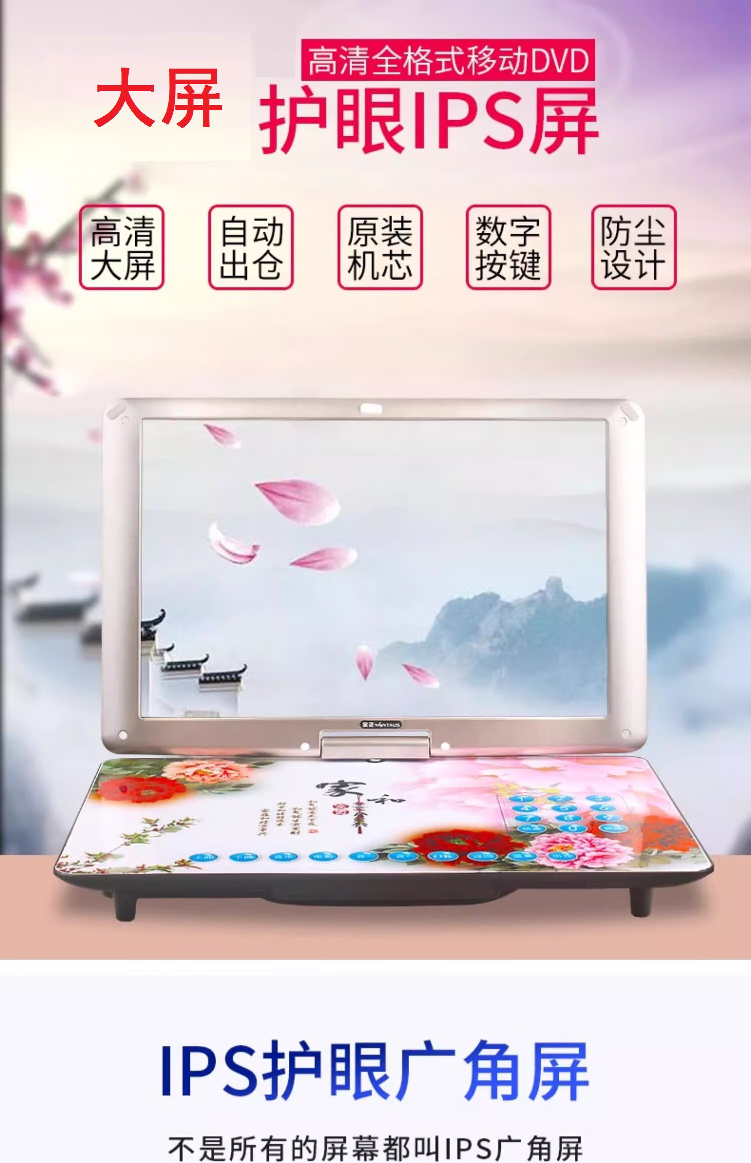 Jinzheng mobile DVD player integrated portable mobile TV vcd with small TV video disc player DVD player cd player video player disc player 12 flagship version (small screen) standard