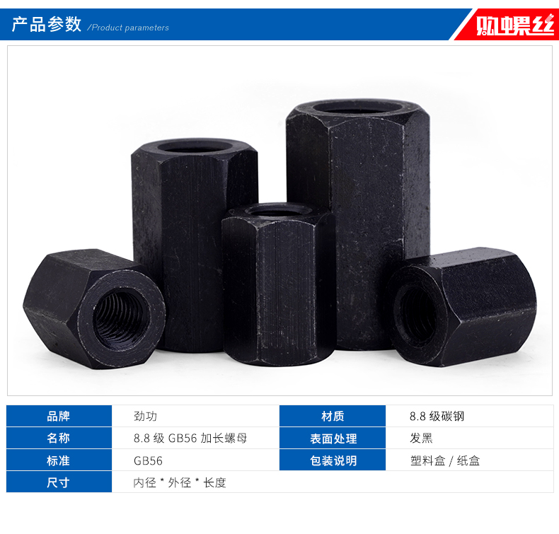 Jinggong (JINGGONG) Jinggong Grade 8.8 GB56 hexagonal thickened nut extended high-strength nut M10M12M14M36L M42*65 across sides*44 in height (1 piece) Grade 8.8