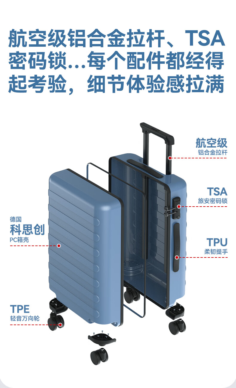 90 points seven-bar Rhine suitcase, large-capacity universal wheel trolley case, boardable suitcase for men and women traveling abroad, titanium gray 26 inches (required to be checked)