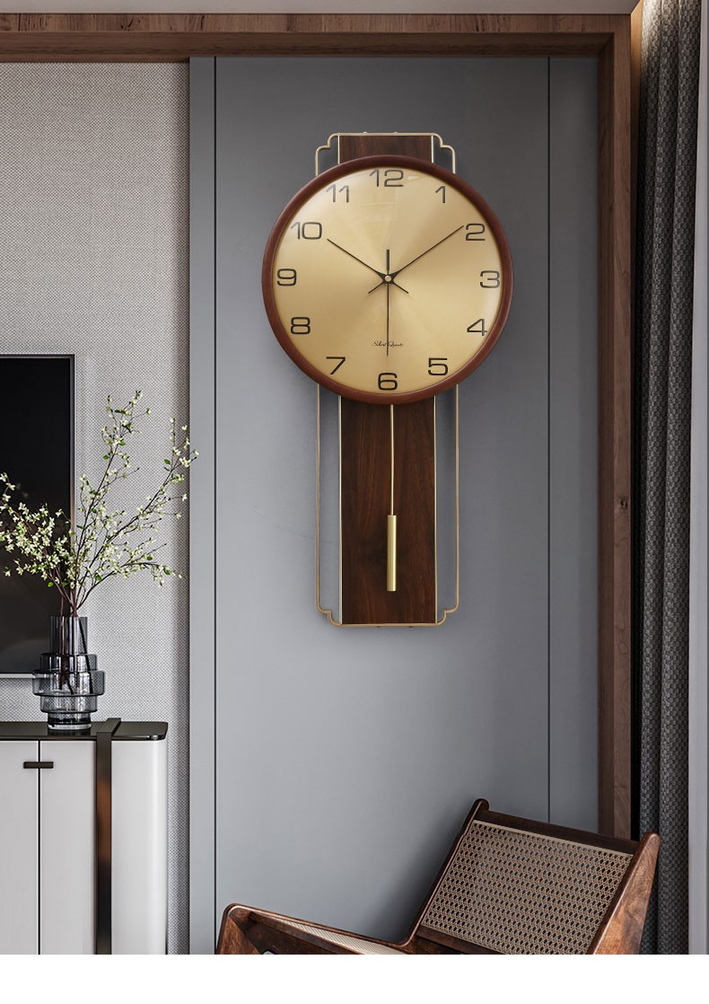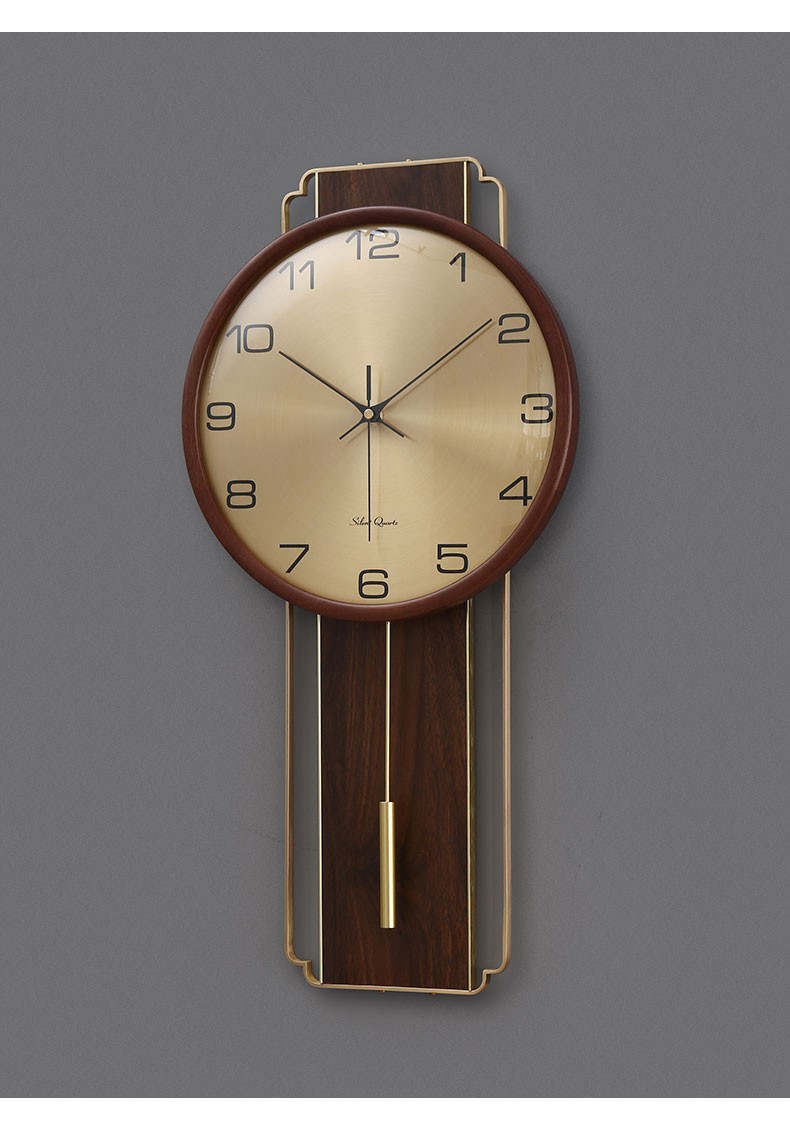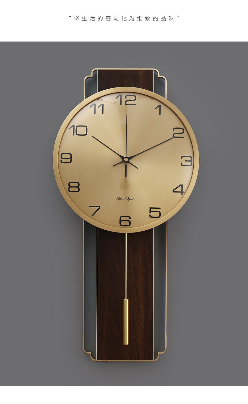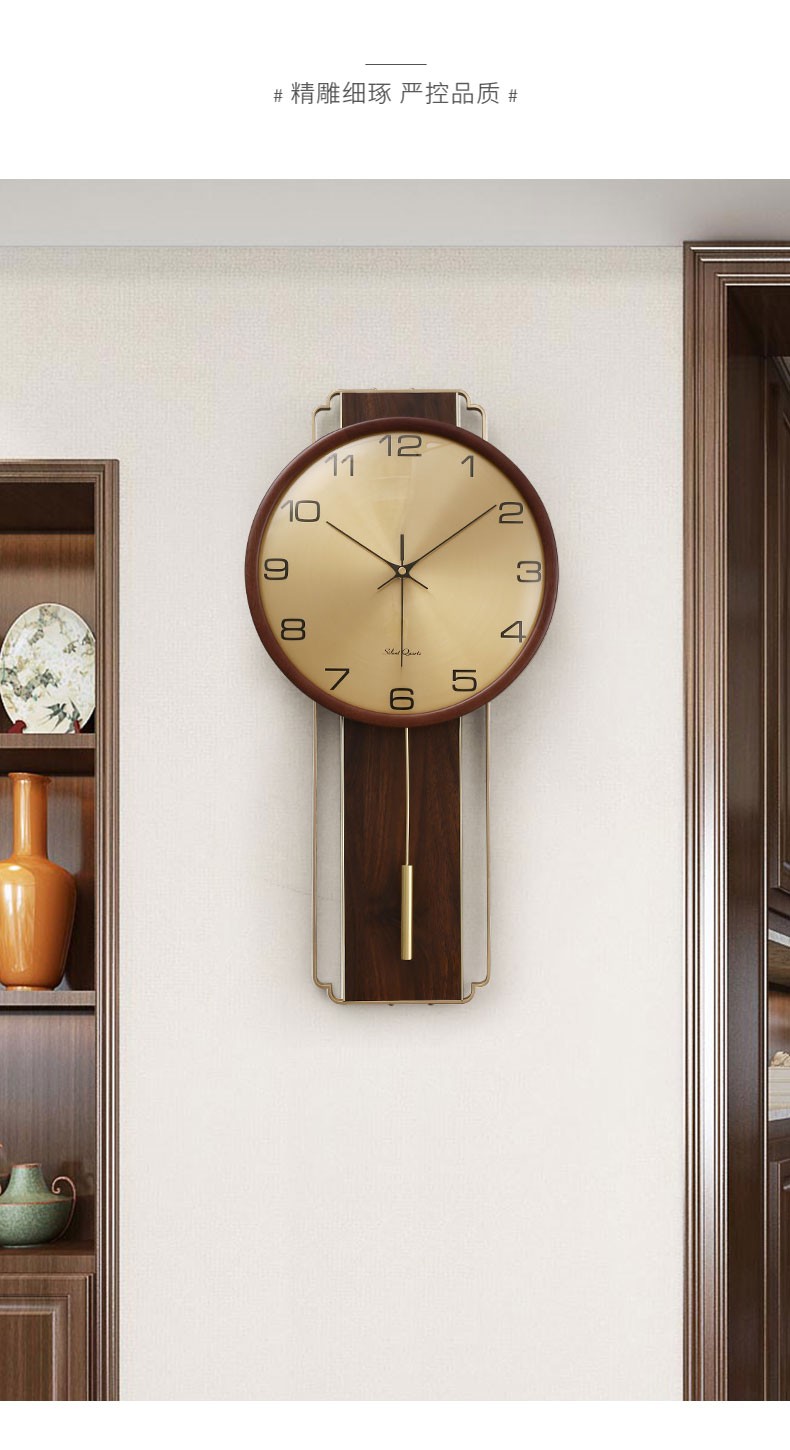 Seven Seconds Impression Seven New Chinese Style Solid Wood Light Luxury Wall Clock Living Room Fashion Wall-Mounted Silent Clock Home Simple and Atmospheric Decorative Quartz Clock Copper Clock Frame with Copper Frame - Style 4